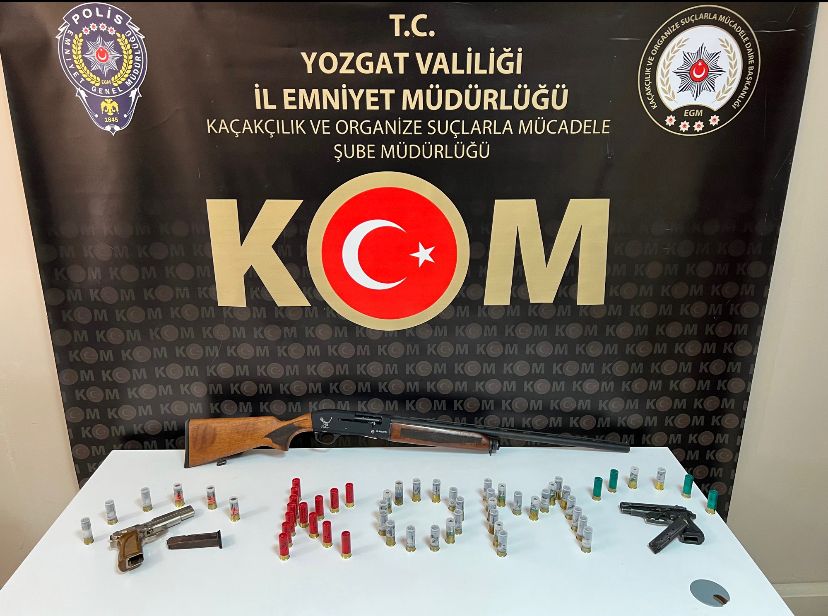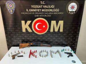 1 adet ruhsatsız av tüfeği, 54 adet av tüfeğine ait kartuş, 2 adet kurusıkı tabanca