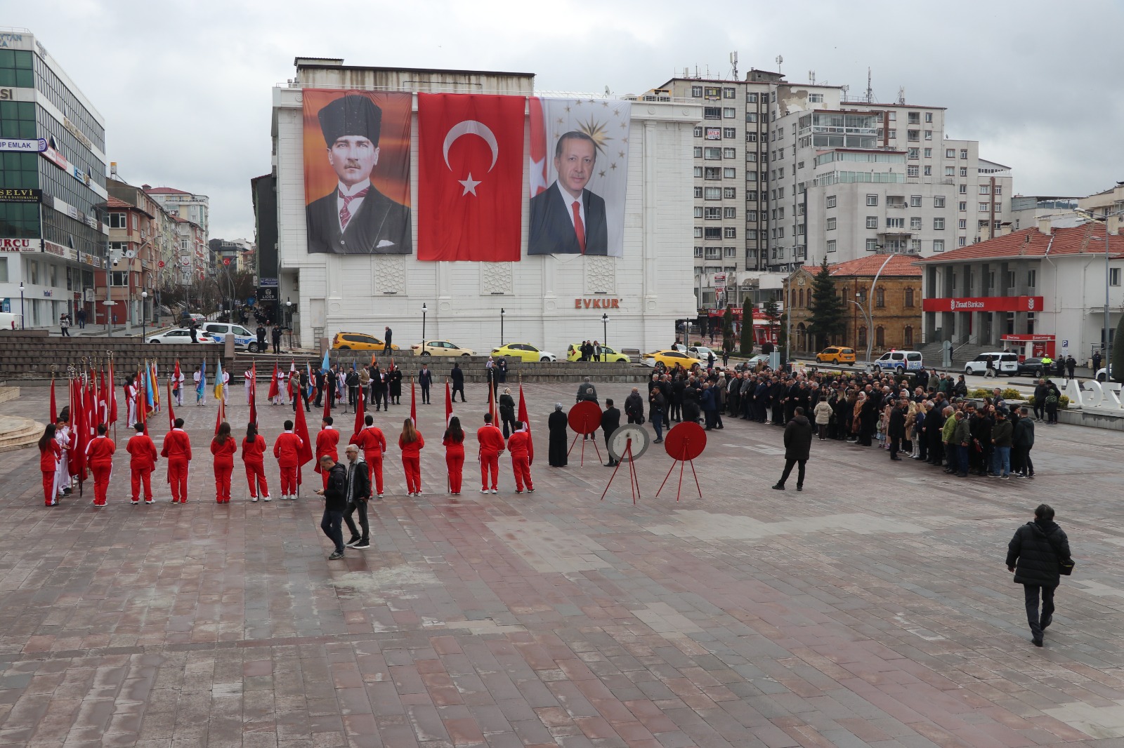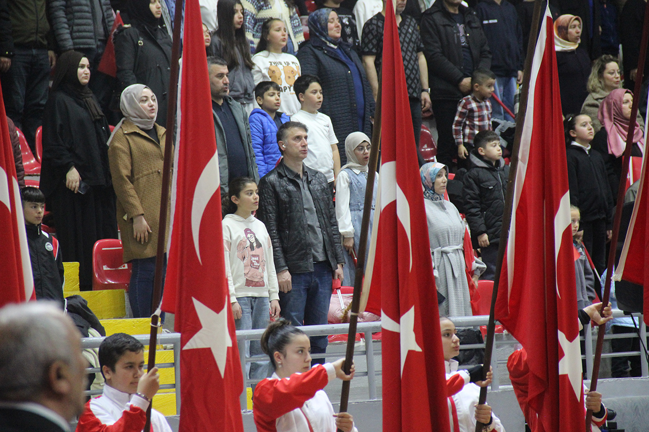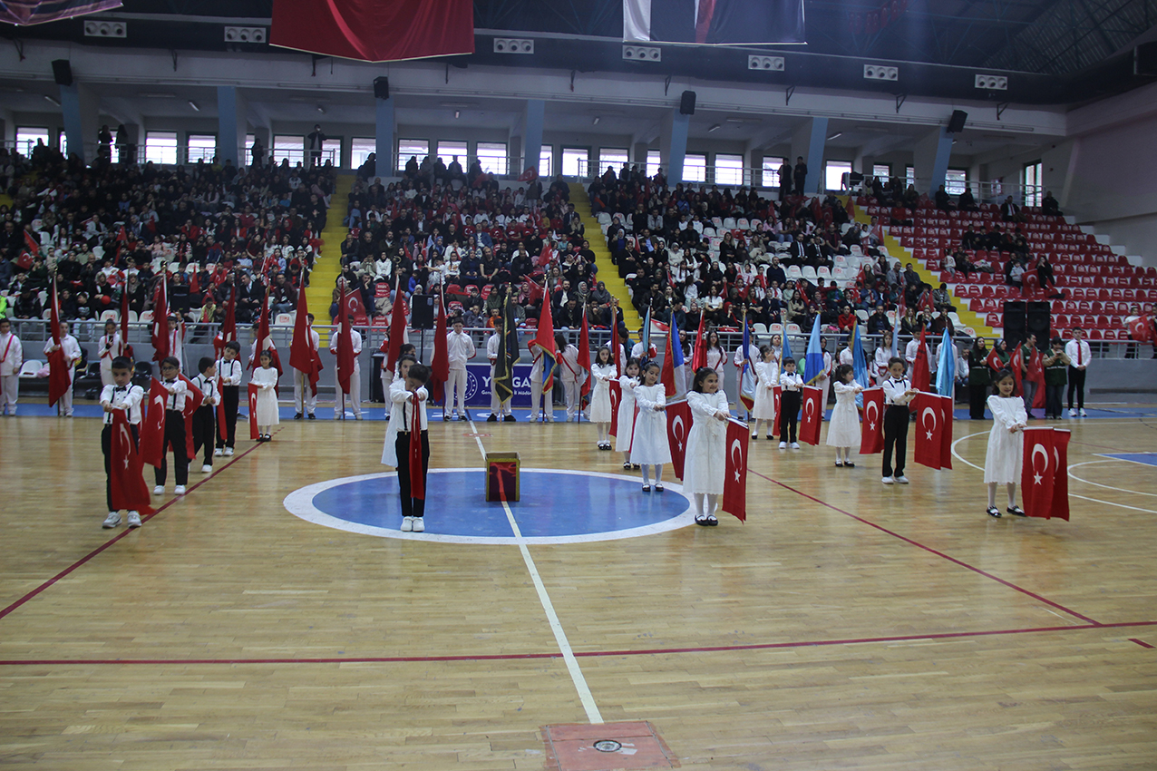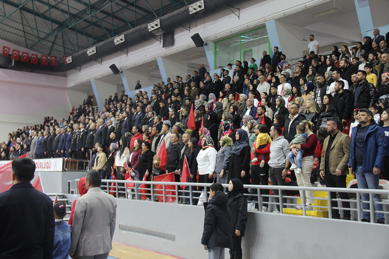 CUMHURİYET MEYDANI’NDA BAŞLAYAN TÖREN SPOR SALONUNA TAŞINDI