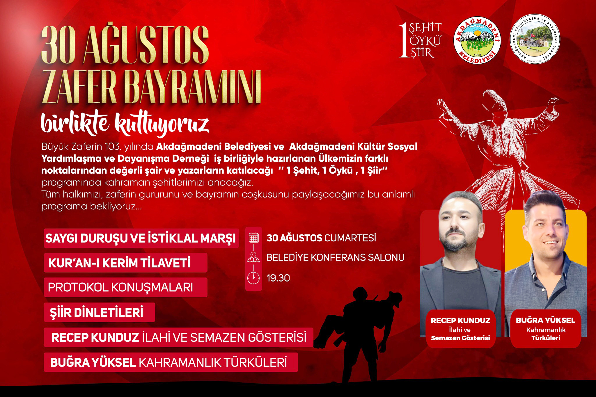 Akdağmadeni Belediyesi ile Akdağmadeni Kültür Sosyal Yardımlaşma ve Dayanışma Derneği iş birliğiyle gerçekleştirilecek programda, ülkemizin farklı bölgelerinden şair ve yazarlar bir araya gelerek “1 Şehit, 1 Öykü, 1 Şiir” etkinliği kapsamında kahraman şehitlerimizi anacak.