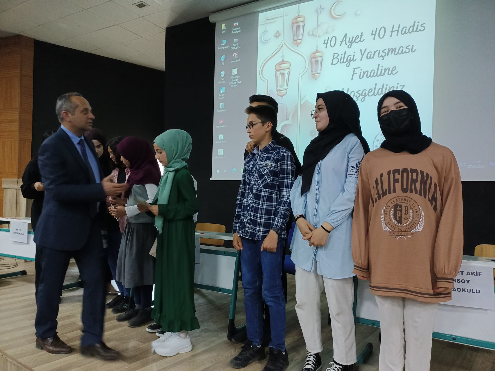 Sarıkaya İlçe Milli Eğitim Müdürlüğü tarafından düzenlenen ’40 hadis 40 ayet yarışması’, Sarızeybek Kültür Merkezi Şehit Yılmaz Gündüz Sinema Salonunda gerçekleştirilen final turuyla sona erdi.