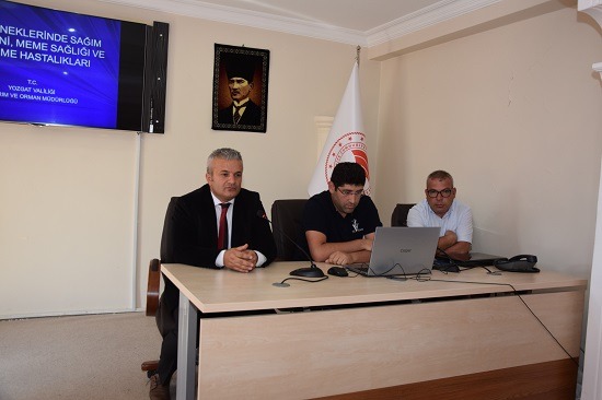 Toplantıda süt sığırlarının bakım ve beslenmesi, meme sağlığı ve meme hastalıkları, yem bitkisi yetiştiriciliği, buzağı ishalleri ve buzağılarda koruyucu hekimlik faaliyetleri hakkında bilgilendirme yapıldı.