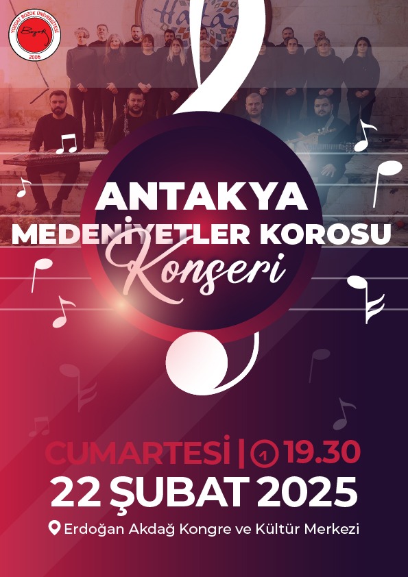 Yozgat’taki kültürel etkinlikler arasında, Antakya Medeniyetler Korosu’nun konseri de yer alacak. 22 Şubat Cumartesi günü saat 19.30’da Erdoğan Akdağ Kongre Kültür Merkezi’nde gerçekleşecek olan konser, katılımcılara unutulmaz bir müzik ziyafeti sunacak. Antakya’nın zengin kültürel mirasını yansıtan bu konser, şehrin sanat hayatına renk katacak.