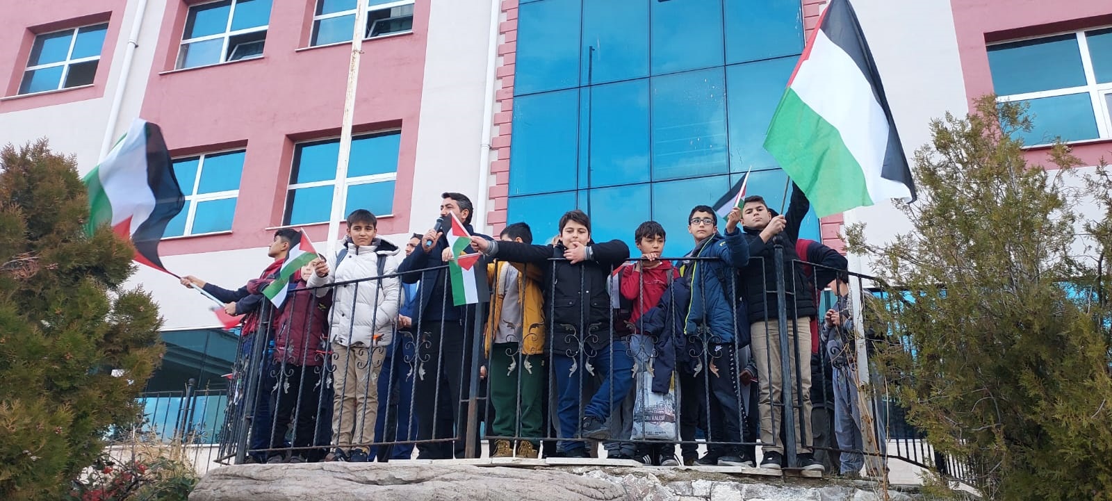 hakkına sahiptir. Hiçbir çocuk eğitim hakkından mahrum edilemez. Biz inanıyoruz ki dünyanın birçok ülkesinde vicdanı hür, aklı selim herkes bu seslenişimize destek verecektir. Filistinli çocuklar özgür olana dek durmayacağız. Sesimizle, sözümüzle, eylemlerimizle onlara destek olacağız.Yaşasın Filistinli çocuklar, yaşasın Özgür Filistin.”ifadelerini kullandı. / Haber Merkezi