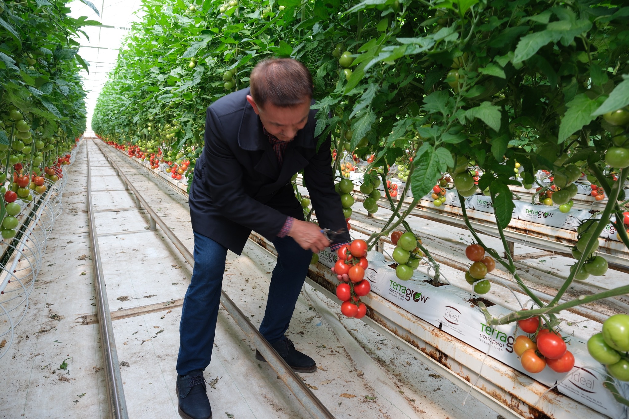 Yozgat Valisi Mehmet Ali Özkan, Sorgun Kaymakamı İhsan Emre Aydın, İl Genel Meclisi Başkanı Adnan Ünal, İl Özel İdaresi Genel Sekreteri Nazif Yılmaz ve İl Tarım ve Orman Müdürü Ömer Şentürk, Sorgun’da jeotermal enerjiyle ısıtılan İlkser Seracılık’ı ziyaret ederek sezonun ilk domates hasadını gerçekleştirdi. Sera sahibi İrfan Altan’dan üretim süreci hakkında bilgi alan Vali Özkan, Yozgat’ın jeotermal kaynaklarının tarımsal verimliliğe nasıl dönüştüğünü yerinde inceledi.
