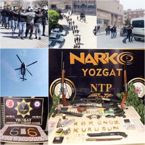 528 adet fişek, 987 gr. Esrar maddesi, 1.300 gr. Metamfetamin maddesi, 185,3 gr. Bonzai maddesi, 241 gr. Hint Kenevir Tohumu maddesi, 15 gr. Eroin maddesi, 1.900 adet Sentetik Ecza hap maddesi, 253 adet Ecstacy hap maddesi, 61 adet Hint Kenevir maddesi, Uyuşturucu madde ticaretinden elde edildiği değerlendirilen 37.345 TL para ele geçirilmiştir. Yozgat İl Emniyet Müdürlüğü olarak Zehir ile mücadelemiz her koşulda kararlılıkla devam edecektir.” Cemil MERMERTAŞ