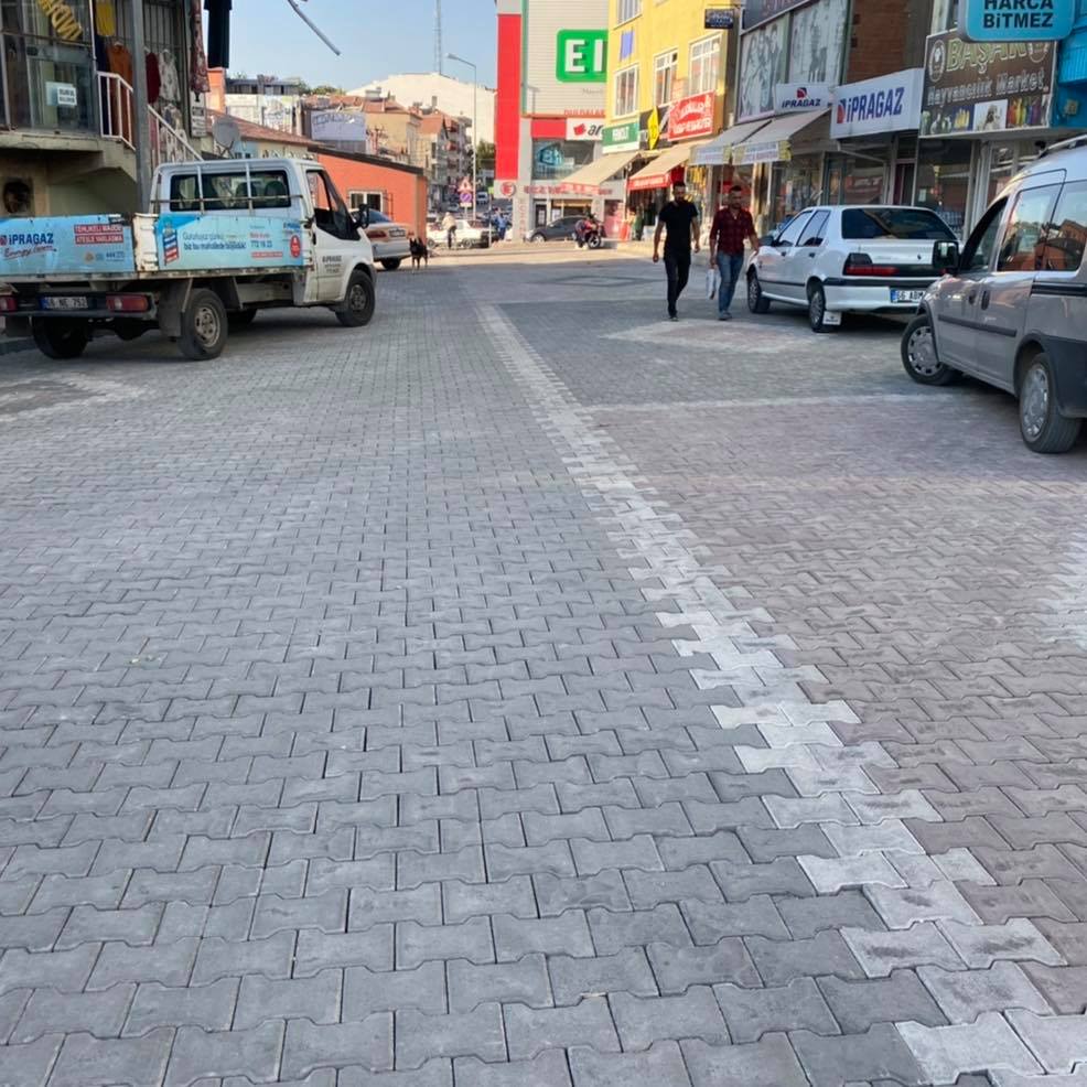 Başkan Açıkel, belediye tarafından devam eden kilitli parke yol yapım çalışmalarını yerinde inceleyerek bilgi aldı.