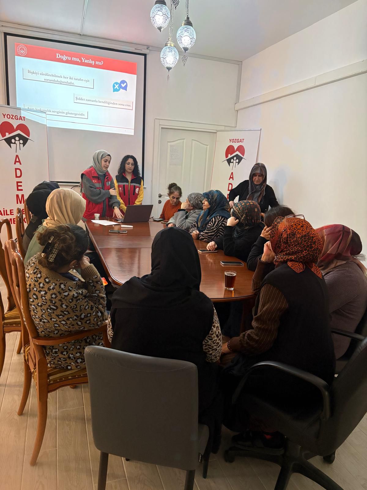 Yozgat Sosyal Yardımlaşma ve Dayanışma Vakfı Müdürlüğü’ne bağlı Aile Destek Merkezi (ADEM-1) bünyesinde eğitim gören kursiyerlere yönelik “Kadına Yönelik Şiddetle Mücadele” konulu bilgilendirme programı düzenlendi.