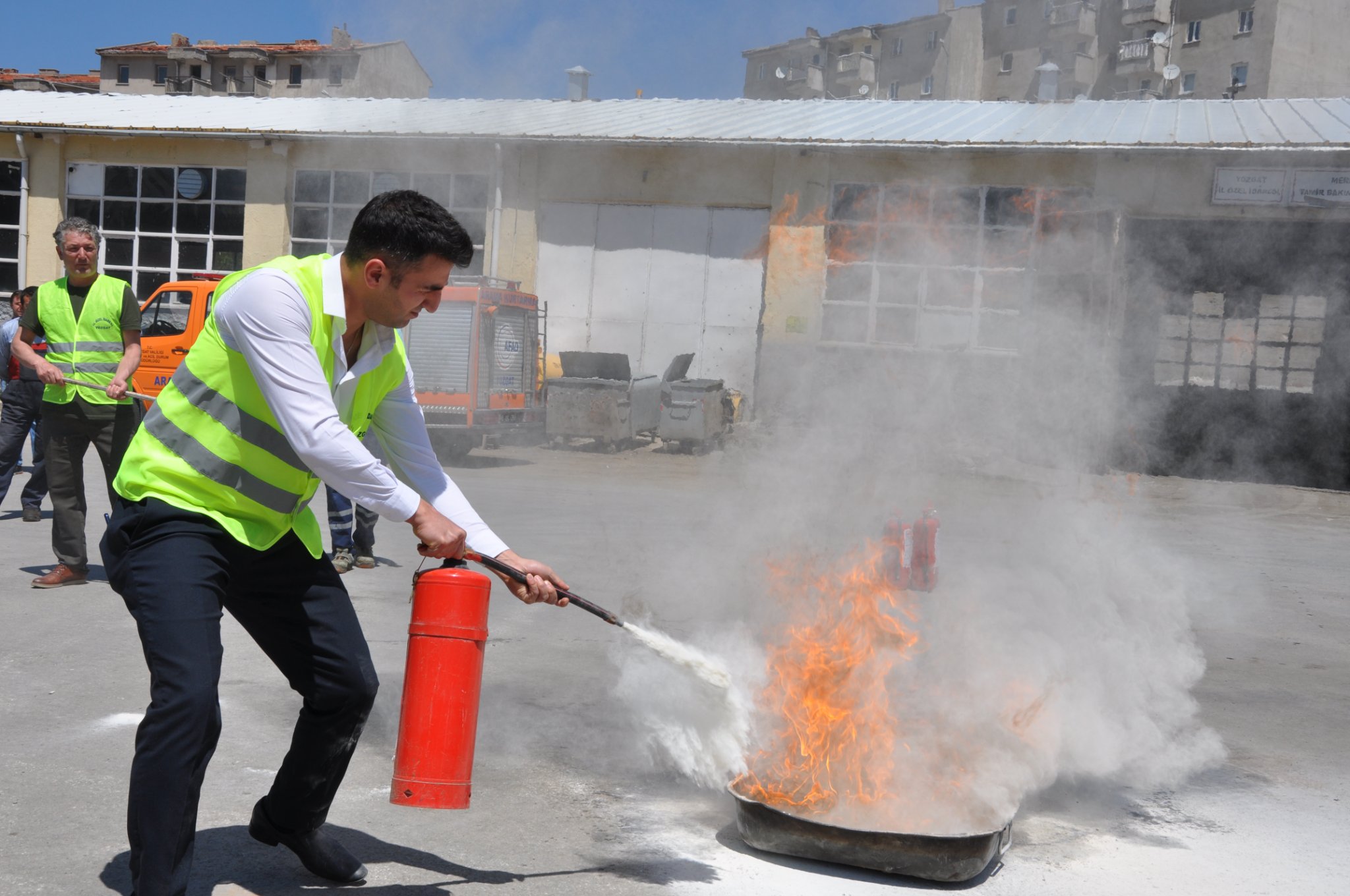 AFAD Şube Müdürü Mustafa Yıldırım İl Özel İdaresi Personellerine iş sağlığı ve güvenliği kanunu gereğince etkin yangın söndürme teknikleri konularında uygulamalı olarak eğitim verdi.