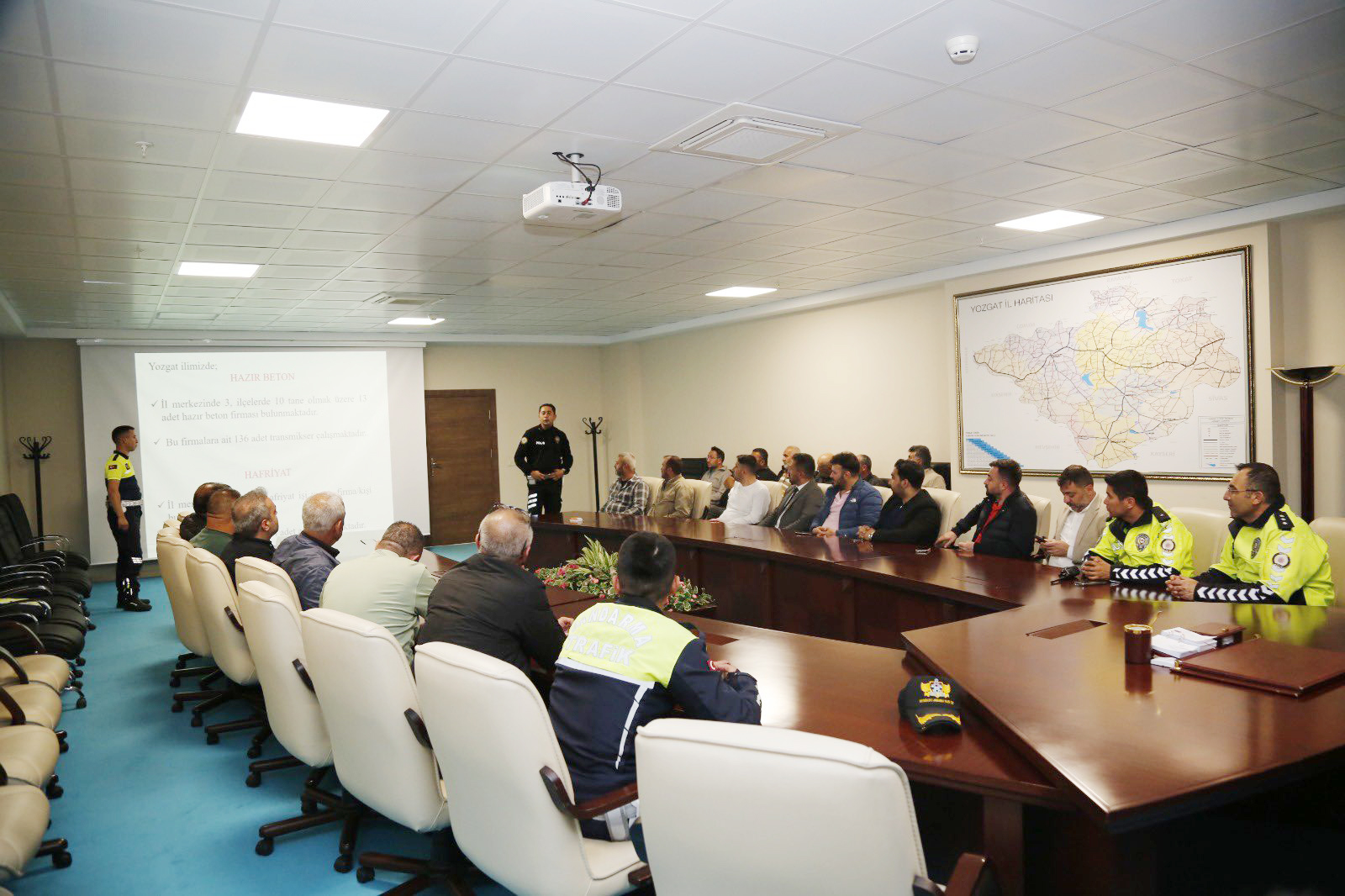 Yozgat İl Emniyet Müdürlüğü ile Jandarma Trafik Birimlerince, kentte faaliyet gösteren beton ve hafriyat taşımacılığı yapan firma yetkilileri ve ağır tonajlı araç sürücülerine yönelik “Trafik Eğitimi” konulu bir toplantı düzenlendi. Toplantı, Yozgat Valiliği Binası Toplantı Salonu’nda gerçekleştirildi.