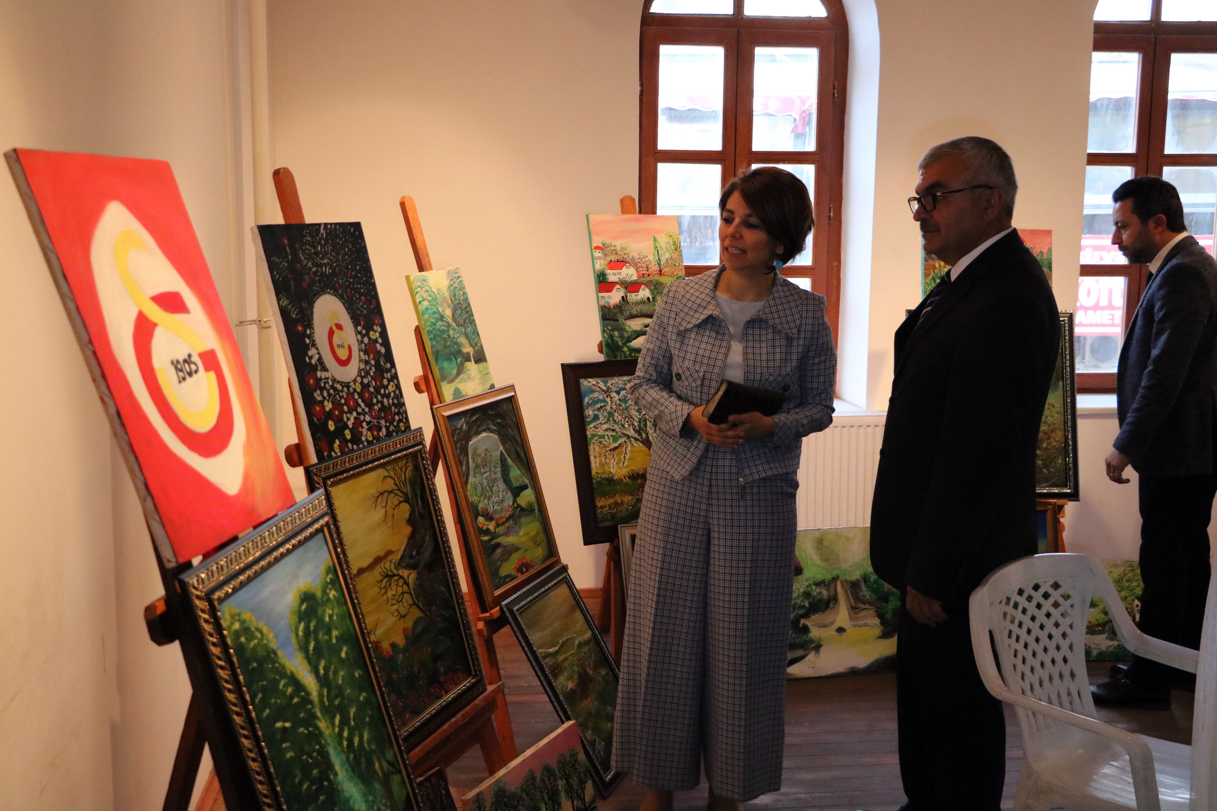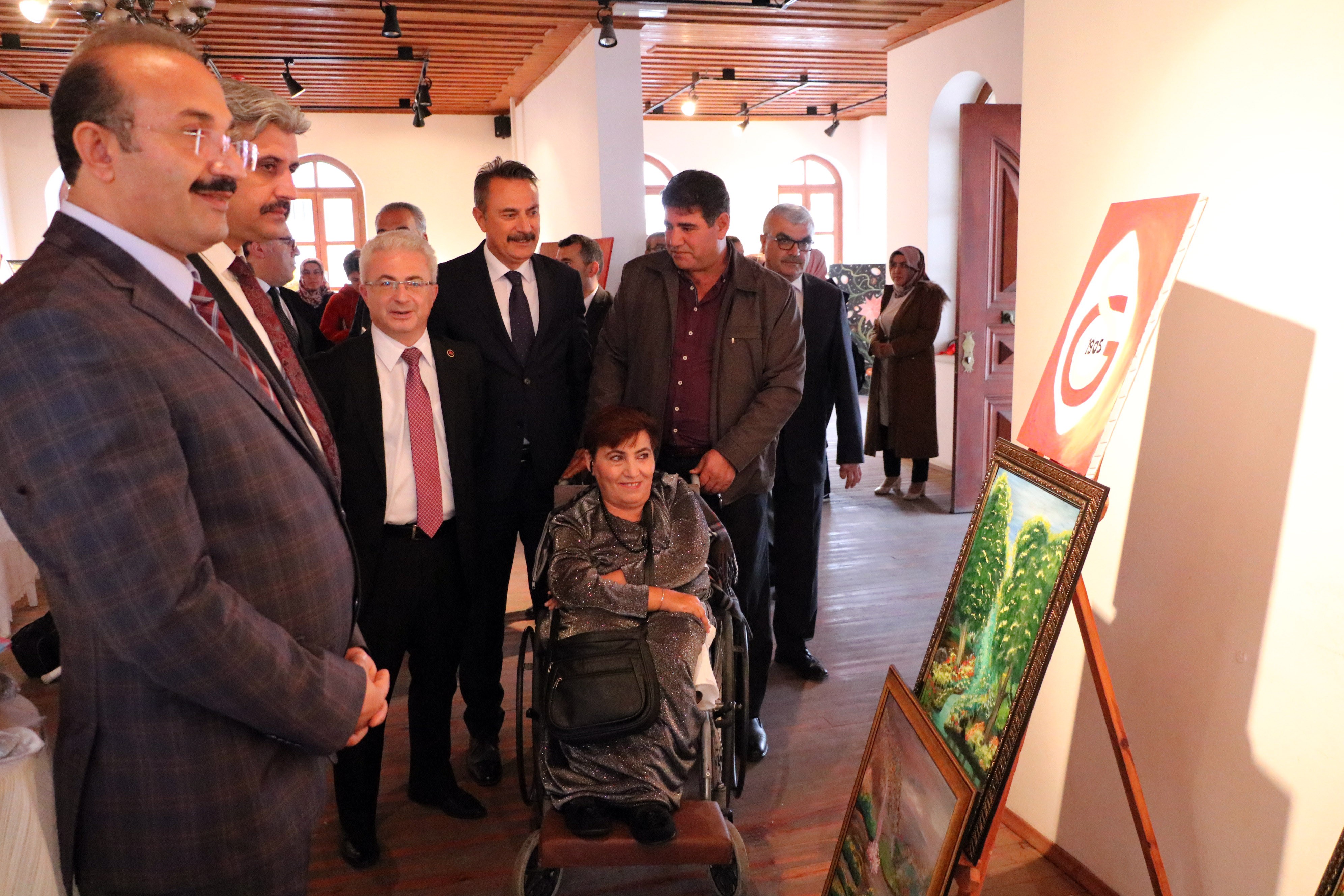 Yozgat Aile Çalışma ve Sosyal Hizmetler İl Müdürlüğüne bağlı Bakım ve Rehabilitasyon Merkezi’nde Narin Işık (52), ellerini kullanamadığı için ağzı ile yaptığı yağlı boya tablolarının sergisini açtı. Binin üzerinde yaptığı eserden 100 adedini görücüye çıkaran bedensel engelli Narin Işık’ın resim sergisi 3 gün boyunca vatandaşların beğenisine sunulacak. Eski Askerlik Şubesinde düzenlenen serginin açılışına Yozgat Vali Yardımcısı Turgay Ergin, Belediye Başkanı Celal Köse, Aile, Çalışma ve Sosyal Hizmetler İl Müdürü Abdullah Neşeli ve vatandaşlar katıldı.