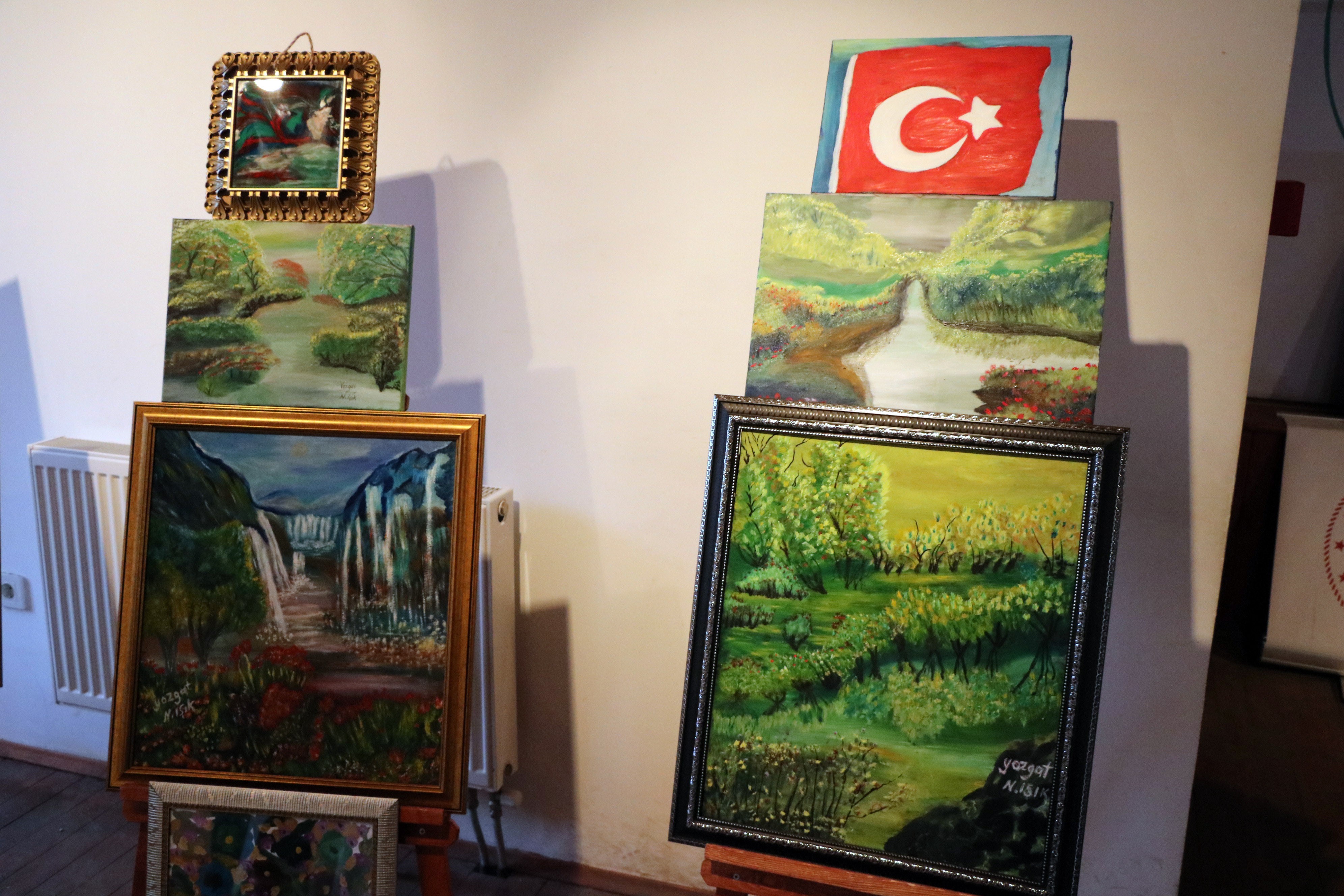 Yozgat Bakım ve Rehabilitasyon Merkezi’nde kalan bedensel engelli Narin Işık, ağzı ile tuttuğu fırçayla yaptığı yağlı boya resimlerle ikinci sergisini açtı.