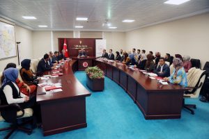 Çalıştay öncesinde konuşan Vali Özkan, Hiçbir aile yapısının buna bizler de dahil olmak üzere temelde sağlam değilse bunun gidişatı ve sonucu maalesef farklı neticelere sebebiyet verdiğini söyledi. Şu anda genel itibariyle birbirinden genelde habersiz sosyal medyanın yetiştirdiği çocuklar veyahut da sosyal medya odaklı çocuklar ve daha çok yaşam biçimini ekonomikleştirmiş bir bakış açısıyla dönüşmüş bir aile yapısıyla karşı karşıya olduğumuzu vurgulayan Vali Özkan, ‘’Tabii burada temel konu her şeyin başında anne ve babaların doğu eğitimi, doğru yetiştirilmesi. Buna milli eğitimi Sosyal hizmetlerin, diyanetin ve farklı kurumların toplumda yer alan tüm kurumların paydaş olarak katılması bu konu üzerinde çalışması ve düşünülmesi gereken bir konu. Hatırlarsanız bizim çocukluğumuz Münir Özkul’la, Adile Naşit’in bir aile ayakta nasıl tutulur filmleriyle geçti. Bakarsınız anne ayakta tutar, baba ayakta tutar. Aile nasıl aile olunur? Buna benzer sinema filmlerini izlemekle geçti. Tabii şu andaki görseller, gerek sosyal medya üzerinde, gerekse televizyon filmleri, gerekse sinema filmleri üzerinde tamamen çekip bir aile yapısı üzerine kurgulanmış, ekonomik kaygılarla yol yürüyen, bir yapıya dönüşmüş bir algıyla yolumuza devam ediyoruz. Mutluluğun, huzurun, acının çok paylaşıla gelmediği, ailelerin aslında sadece apartmanda değil, evin içinde bile insanların birbirinden çok haberdar olmadığı bir yapıya dönüşmüş vaziyetteyiz. Tabii bu da toplum sorunları söz yerindeyse millet olarak bağlarımızın zayıflamasına sebebiyet veriyor’’ dedi.