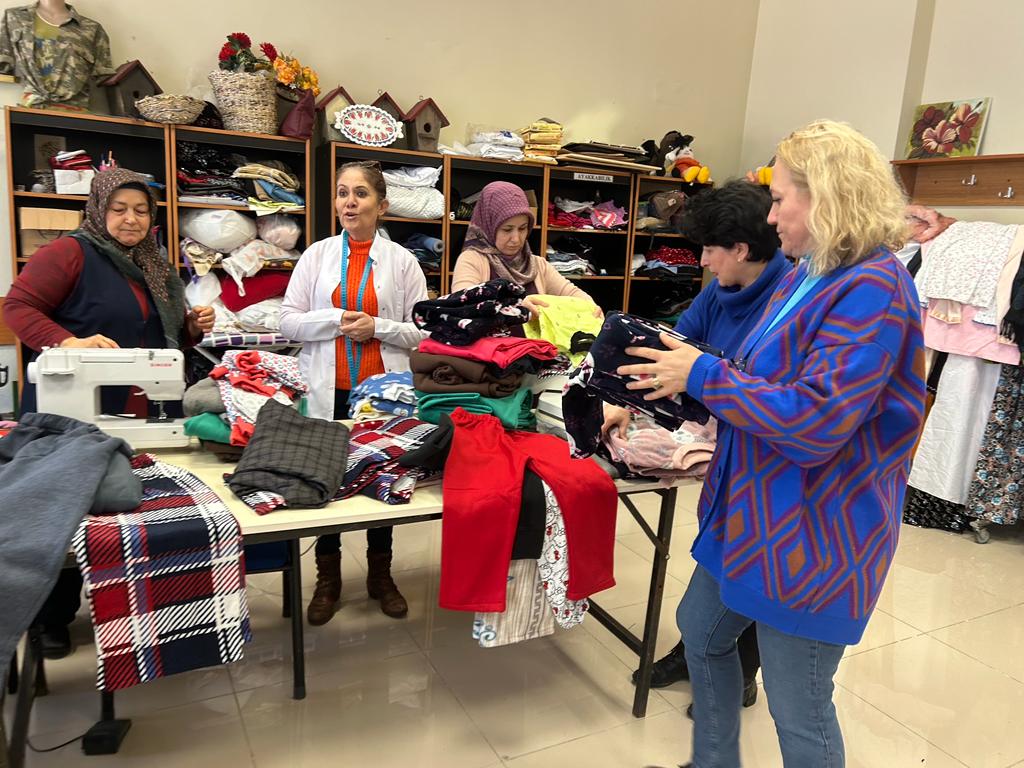 Usta öğretici Sevcan Gümüş ise, ‘’Öncelikle ülkemize çok geçmiş olsun. Depremde hayatını kaybedenlere rahmet diliyoruz. Biz onlar için kendi çabamızla bir şeyler yapmaya çalışıyoruz. Gönüllü kursiyerlerimizle birlikte iç çamaşırı, kıyafet dikiyoruz. Onları bir nebze olsun ısıtmak için çalışıyoruz. Bu kıyafetleri deprem bölgesine de gönderiyoruz, buradaki depremzede vatandaşlarımıza da iletiyoruz’’ diye konuştu. İhsan Çelikkaya