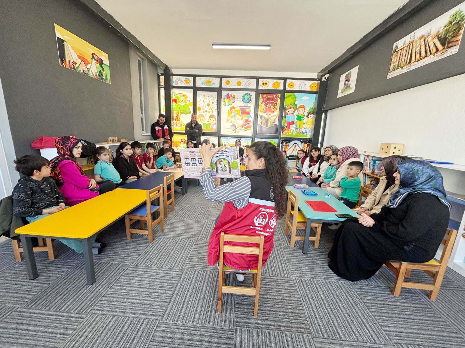 Kültür ve Turizim Bakanlığı Yayınlarına ait “Bir Kütüphane Macerası Tam Bana Göre” isimli kitap, personeli tarafından etkinliğe katılan çocuklara ve ailelere okundu. Kütüphane hakkında sorular soruldu, kütüphane tanıtımı ve kaydı yapıldı. / Haber Merkezi