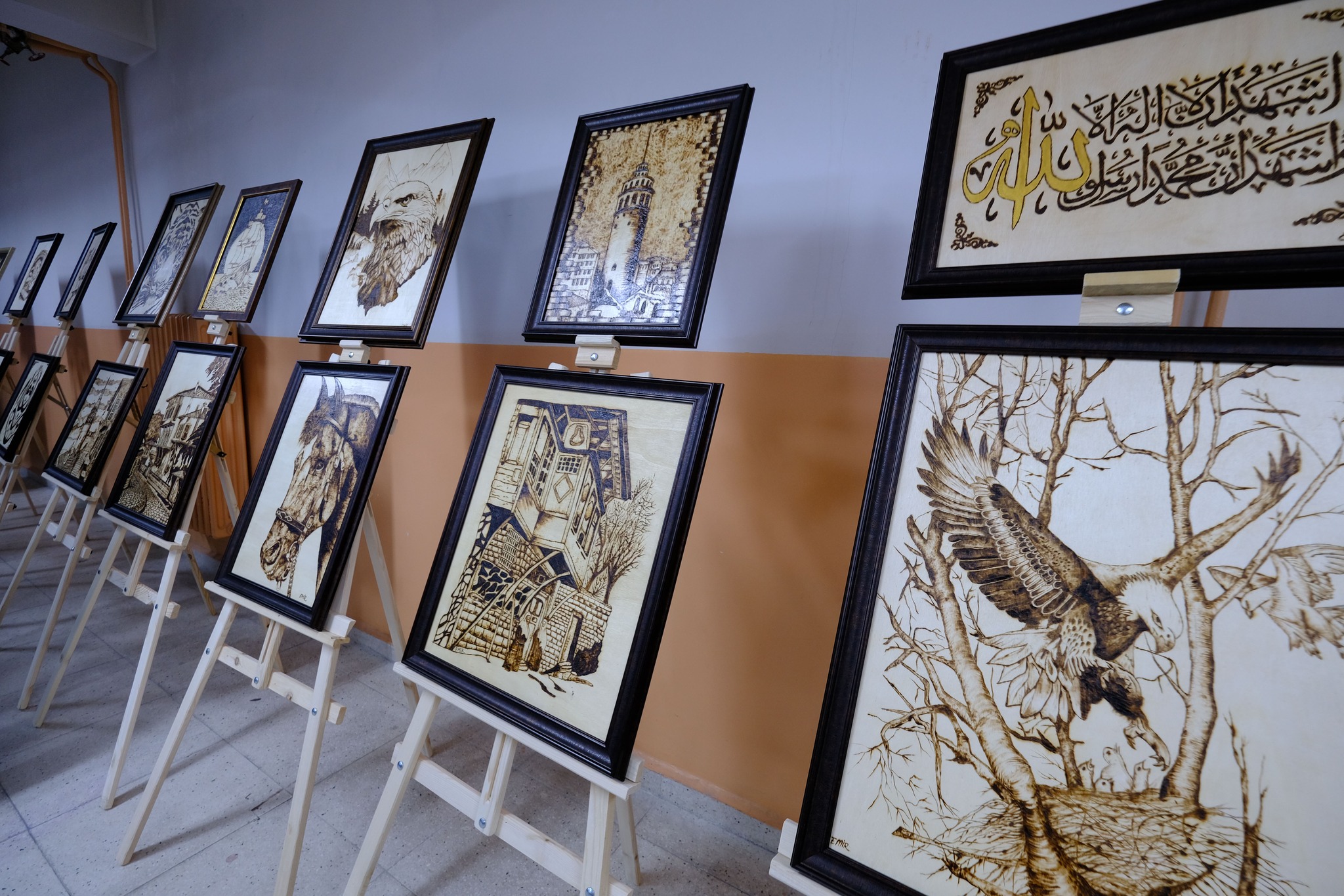 Yıl boyunca Atatürk İmam Hatip Ortaokulu Resim Öğretmeni Saadet Baydoğan tarafından açılan görsel sanatlar kursları öğrencilerinin ortaya çıkardığı eserler sergilendi.
