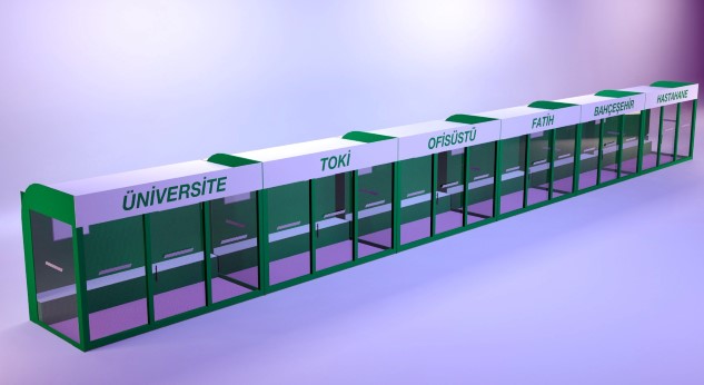 Otobüslerin kalkış durağı olan E-88 Karayolu Abide İş Hanı karşısına 40 metre uzunluğunda 1,85 metre genişliğinde 10 kabinden oluşan inverter klimalı, USB girişli, güvenlik kameralı otobüs durakları yerleştirilecek.