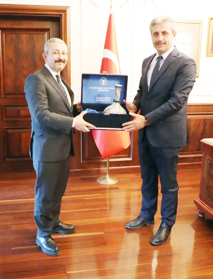Yozgat Ticaret ve Sanayi Odası için yapılan seçim sonrasında Başkanlık koltuğuna oturan Taylan Alakoç, kendisine hayırlı olsun ziyaretlerinde bulananlara tekrardan iadeyi ziyarette bulunuyor. Önceki gün Yozgat Belediye Başkanı Celal Köse’yi ziyaret eden Ticaret ve Sanayi Odası Başkanı Taylan Alakoç, Başkan Köse’ye hem teşekkür etti, hem de yapacakları çalışmalar hakkında bilgi verdi. Belediye Başkanı Celal Köse ise ‘’Başkanımız Taylan Alakoç beyefendi ve yönetim kurulu üyeleri belediyemizi ziyarete geldiler. Kıymetli heyetimize nazik ziyaretleri için teşekkür ediyorum’’ dedi. Ziyaret sonrasında Belediye Başkanı Celal Köse, Alakoç’a hediye takdim etti. / Yusuf Bağcı