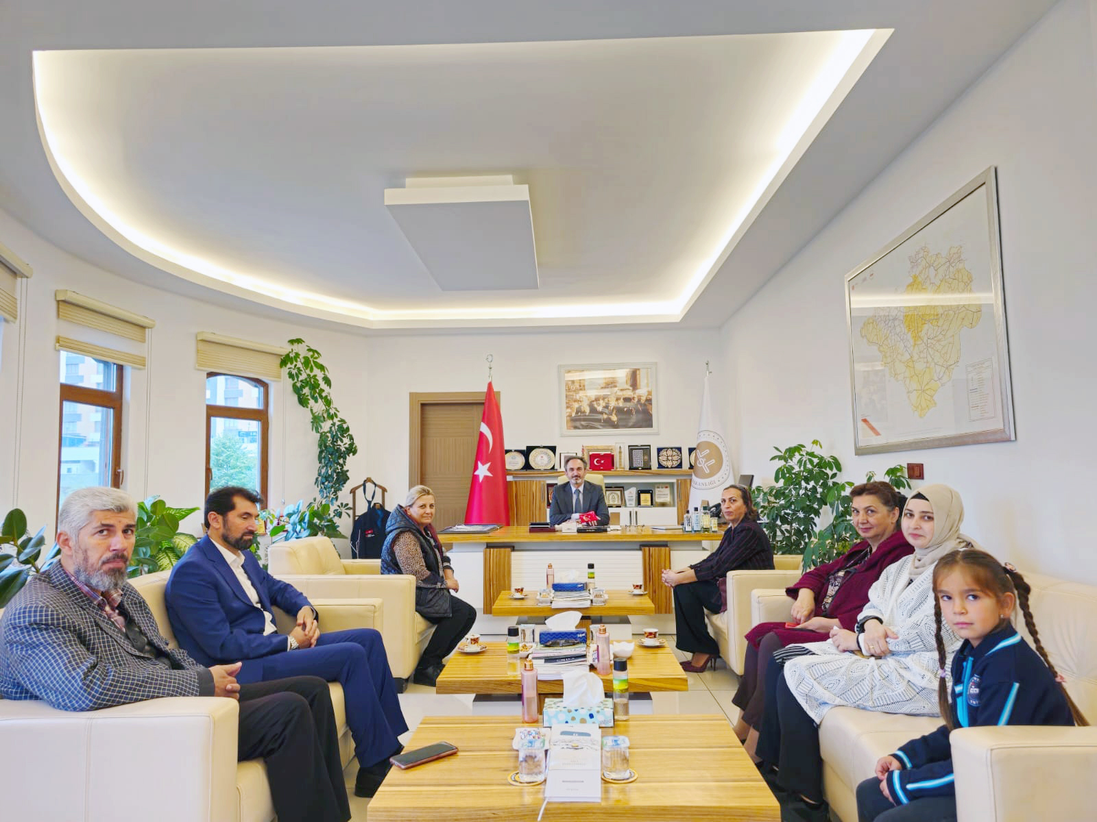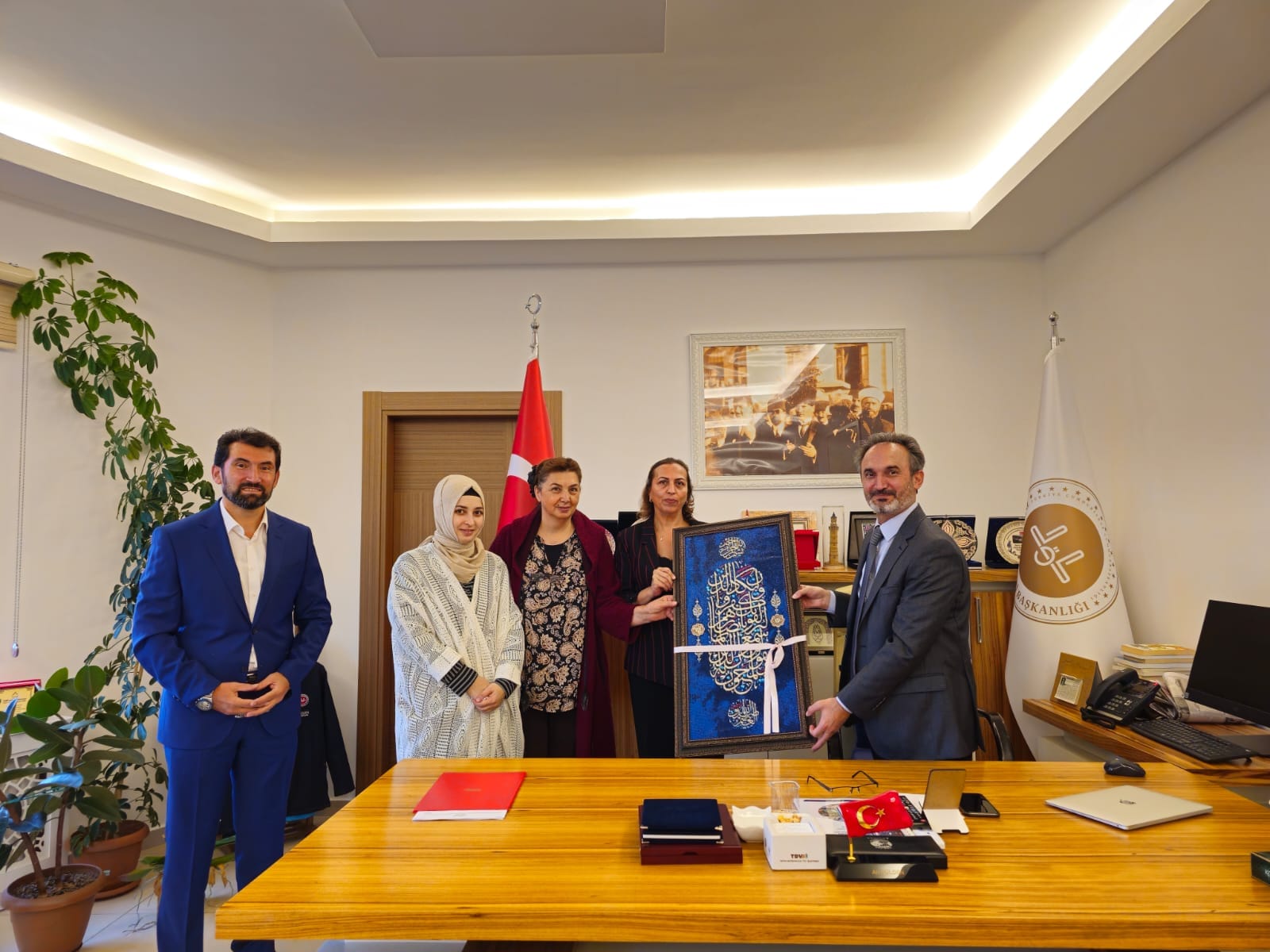 Müftülük makamında gerçekleşen ziyarette Kurum Müdiresi Handan Çalkar, Müdür Yardımcısı Muteber Mahir, Müftü Gülden’e haftanın anısına tablo hediye etti.