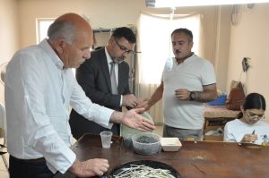 Yerköy Belediye Başkanı Av. Fatih Arslan, Acer Zanaat Atölyesi’ne gerçekleştirdiği ziyarette, alevli cam işlemeciliği sanatının incelikleri hakkında bilgi aldı.