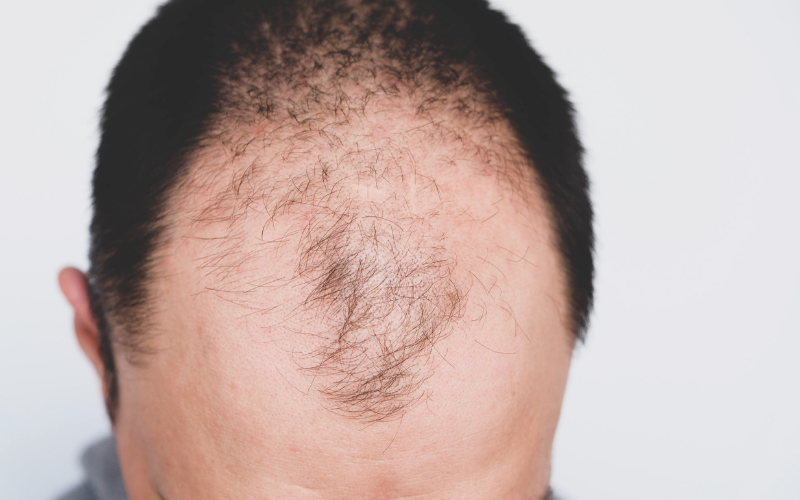1.Kafanın ön tarafında alt nalı şeklinde ve kafanın tepe bölgesinde saç dökülmeleri