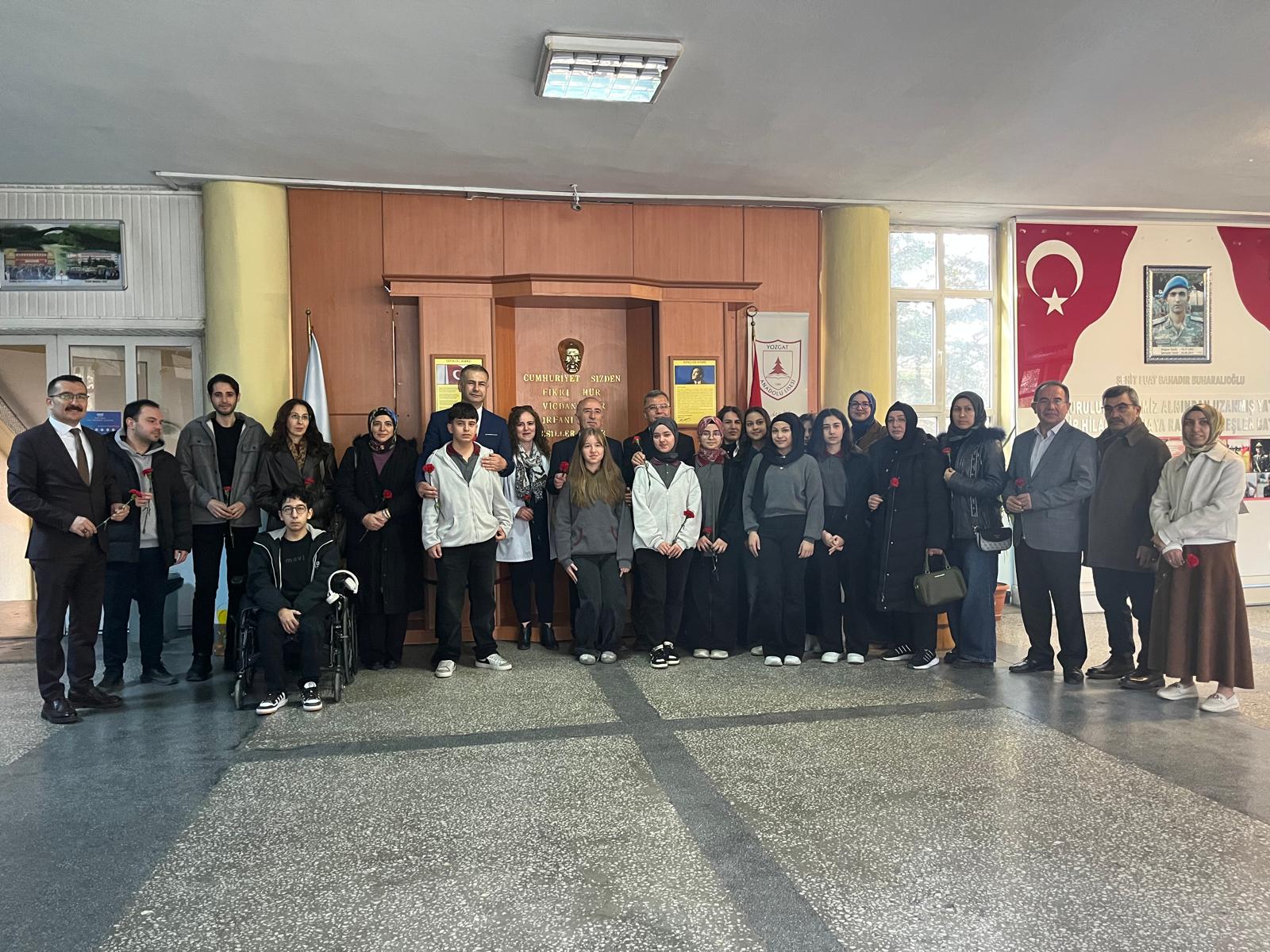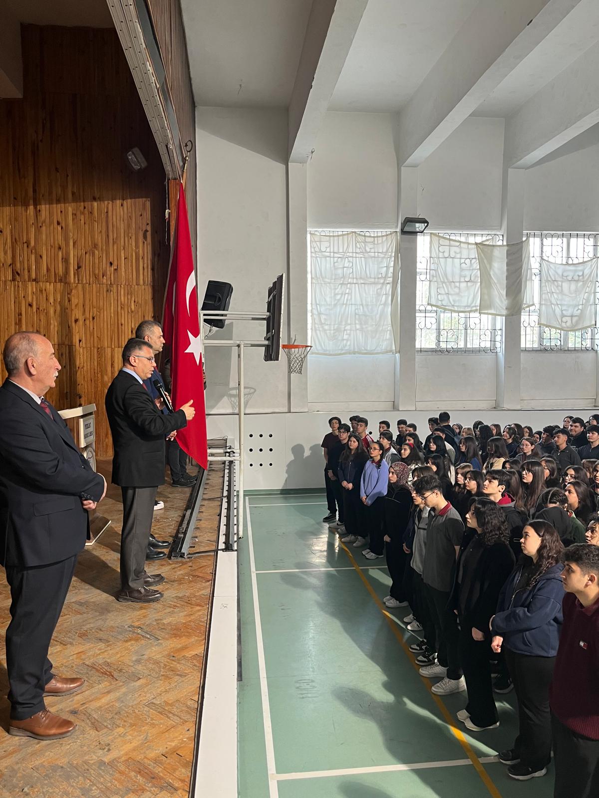 İl Millî Eğitim Müdürü İsmail Altınkaynak, beraberinde İl Millî Eğitim Müdür Yardımcısı Selçuk Doğandemir ile birlikte Şehit Fuat Bahadır Buharalıoğlu Anadolu Lisesi’ni ziyaret ederek bayrak töreninde öğrenci ve öğretmenlerle bir araya geldi.