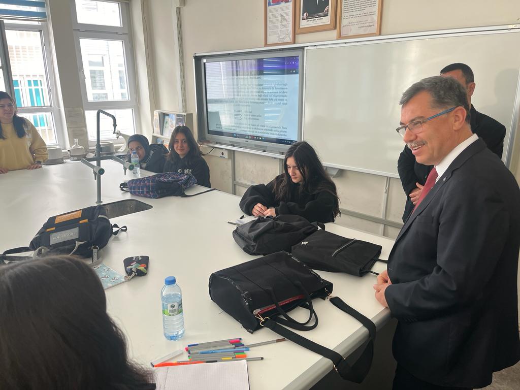 Ziyaret kapsamında okulun birimlerini inceleyen ve yöneticilerden bilgi alan İl Müdürü Altınkaynak, sınıfları ziyaret ederek öğrencilerle sohbet etti. Eğitim süreçlerine yönelik değerlendirmelerde bulunan Altınkaynak, öğretmenlerle de bir araya gelerek eğitim öğretim süreçleri ve yürütülen projeler hakkında görüş alışverişinde bulundu.