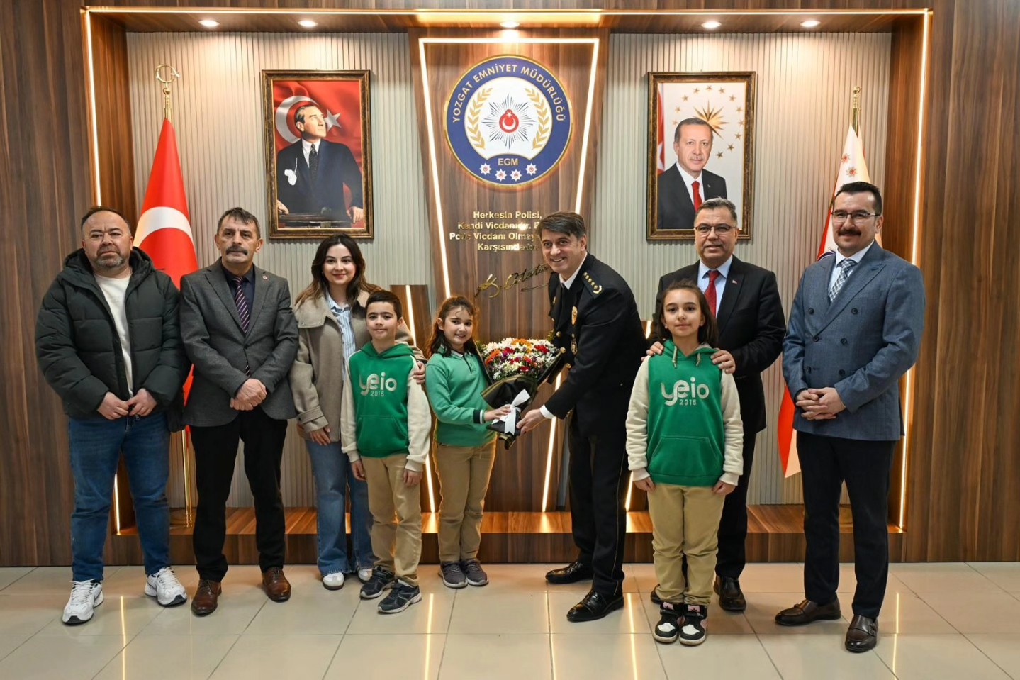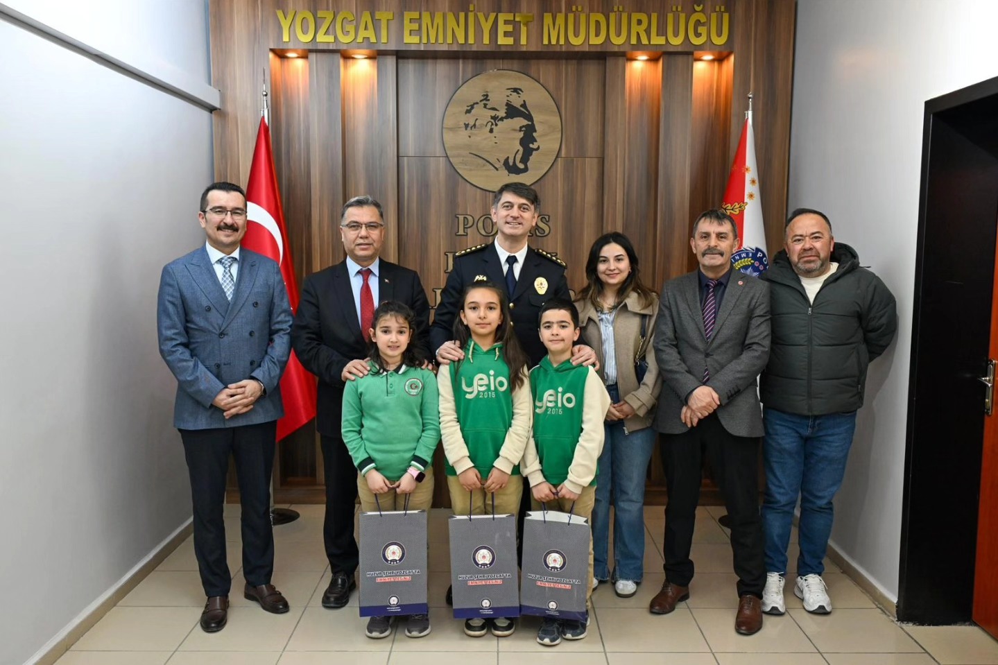 Yozgat İl Milli Eğitim Müdürü İsmail Altınkaynak, 10 Nisan Polis Haftası dolayısıyla öğrencilerle birlikte Yozgat İl Emniyet Müdürü Necmettin Koç’u makamında ziyaret ederek haftalarını kutladı.