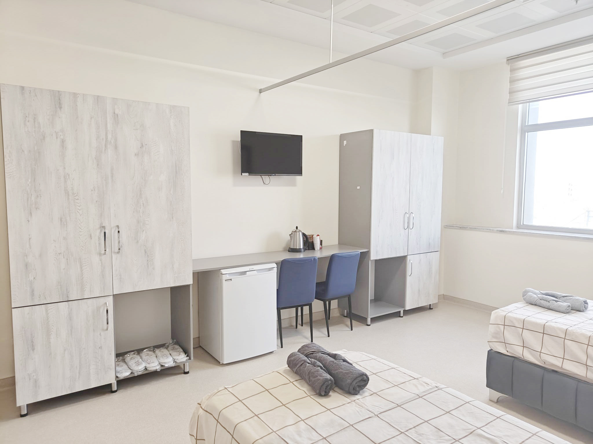 Hastane yönetimi tarafından oluşturulan misafirhane, anne adaylarının doğuma hazırlık sürecinde dinlenebileceği, eğitim alabileceği ve uzman sağlık personelinin takibinde güvenle vakit geçirebileceği konforlu alanlardan oluşuyor.