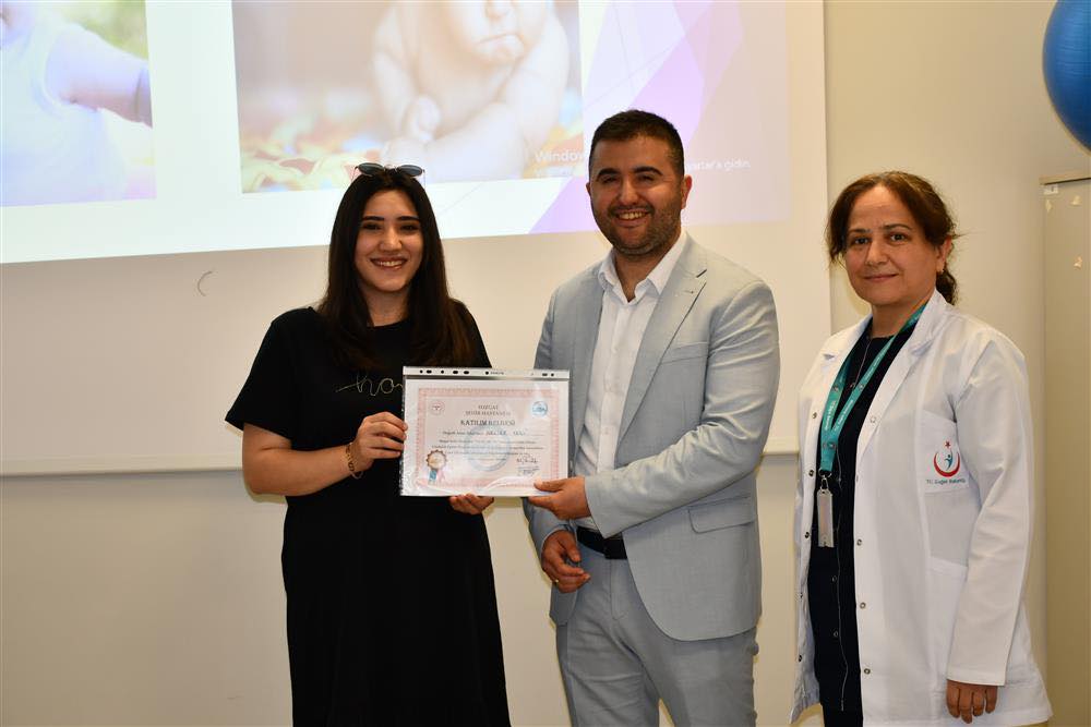 Başhekim Mustafa Kozan, etkinlikte anne adaylarına sertifikalarını takdim ederek tebrik etti. Başhekim Kozan, “Hastanemizde alanında deneyimli ve eğitimli Ebe Demet Civan, Fizyoterapist Semanur Fırat Ergoterapist ve Mustafa Özbent eşliğinde anne adaylarına 5 haftalık eğitim eğitim verildi. Bu süreçte; Gebeliğin oluşumuz ve fizyolojisi, Gebelikte tehlike belirtileri ve önlemler, Gebelikte günlük yaşam ve beslenme, Doğum süreci ve doğum ağrısı ile ilaçsız baş etme yöntemleri ( egzersiz, nefes egzersizi, masaj gibi), Yenidoğan özellikleri-bakımı-yıkanması-masaj, Anne sütü ve emzirme, Anne adaylarımızdan doğmamış bebeklerine mektup, Lohusalık, Aile Planlaması konularında eğitimlerin yanı sıra; nefes egzersizi, meditasyon, gebelik egzersizi uygulamalarıyla desteklenerek anne adayları bilgi ve beceri kazanmış olarak mezun oldular.