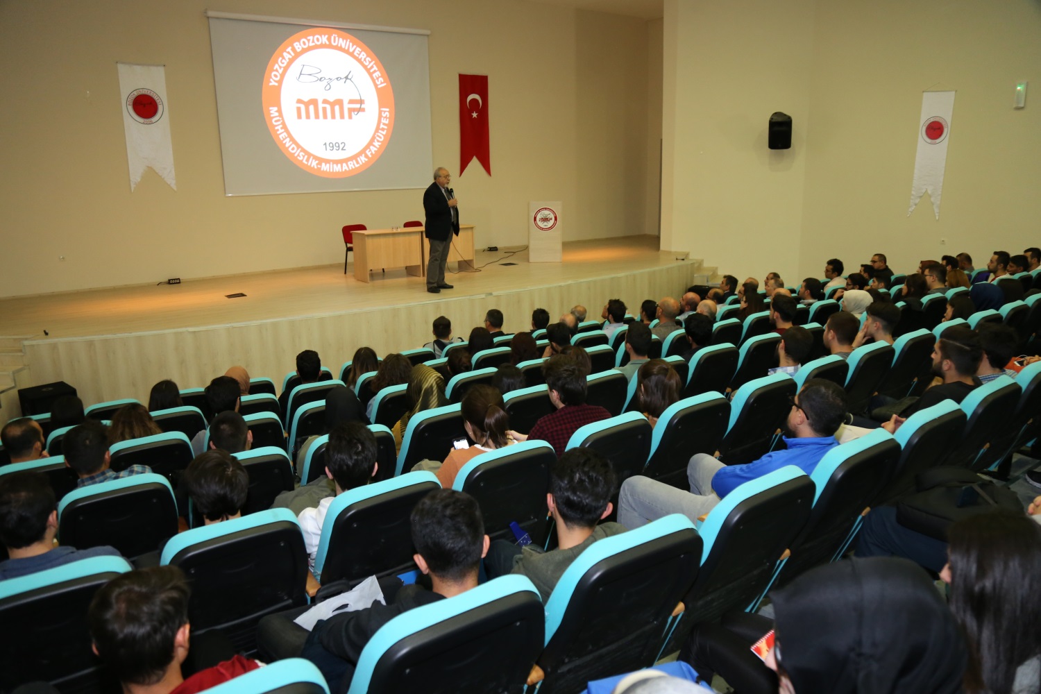 Mühendislik – Mimarlık Fakültesi konferans salonunda gerçekleşen söyleşi programına Bozok Üniversitesi Rektörü Prof. Dr. Ahmet Karadağ, Mühendislik –Mimarlık Fakültesi Dekanı Prof. Dr. Zakir Taş, öğretim üyeleri ve çok sayıda öğrenci katıldı.