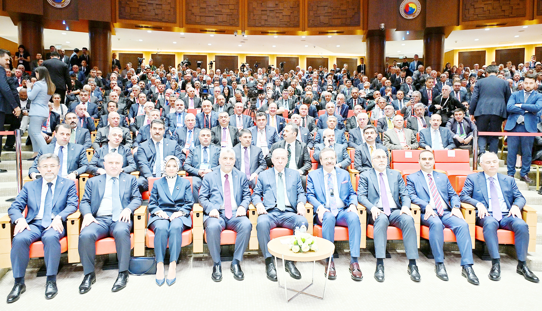 TOBB İkiz Kuleler’de gerçekleştirilen törene, Aile ve Sosyal Hizmetler Bakanı Mahinur Özdemir Göktaş, Çalışma ve Sosyal Güvenlik Bakanı Vedat Işıkhan, Gençlik ve Spor Bakanı Osman Aşkın Bak, Sanayi ve Teknoloji Bakanı Mehmet Fatih Kacır, Ticaret Bakanı Ömer Bolat, Tarım ve Orman Bakanı İbrahim Yumaklı ve AK Parti Genel Başkanvekili Efkan Ala da katıldı. / Yusuf BAĞCI