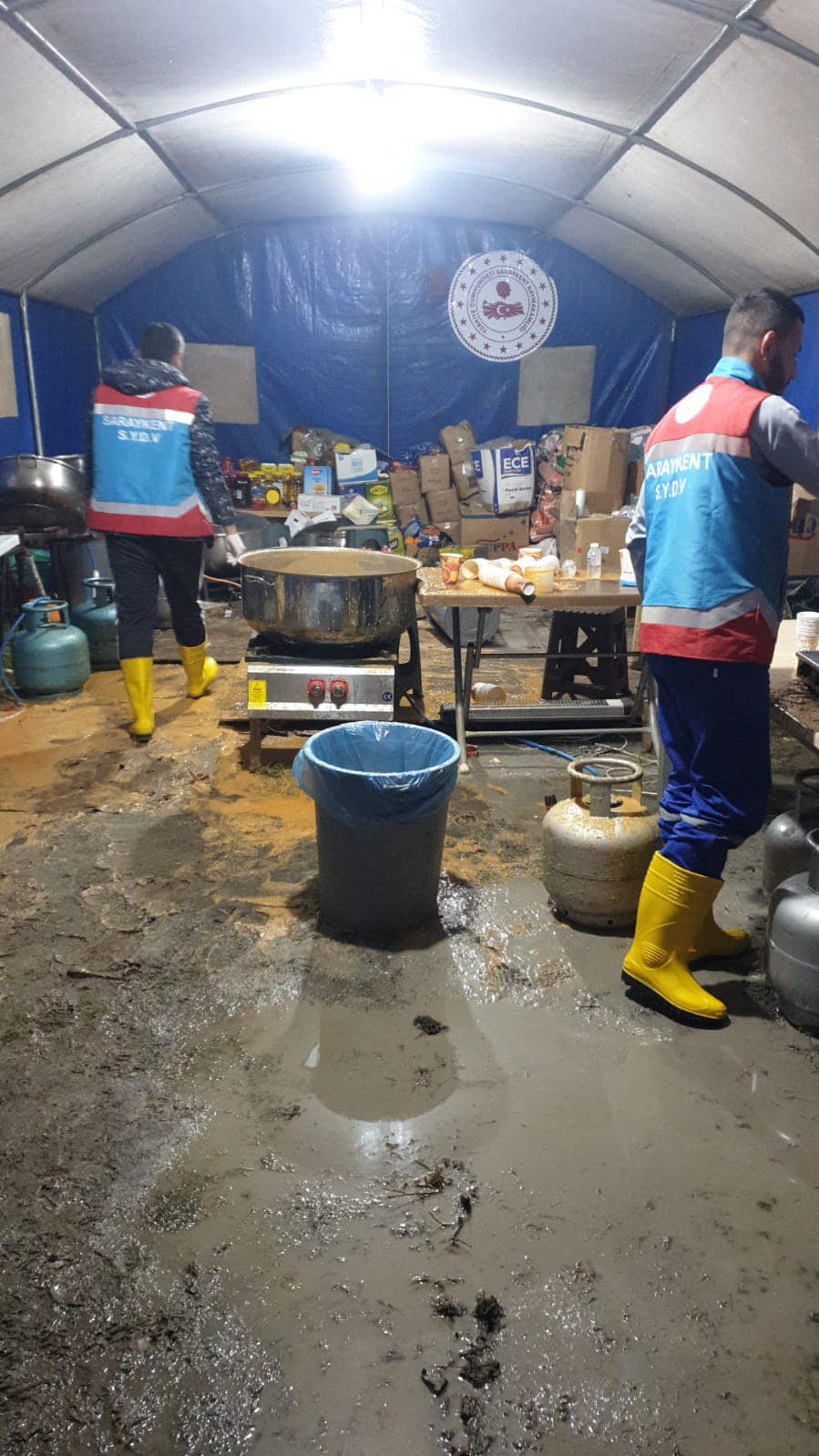 Saraykent Kaymakamı Ali Açıkgöz, ‘’Hatay’da meydana gelen yeni depremde, bölgede kurduğumuz aşevi çadırımızda depremin şiddetiyle yemek kazanlarımız devrildi. Aşevimiz ciddi bir şekilde depremden etkilendi. Allah’a şükürler olsun 20 kişilik ekibimizi, edilen dualar hürmetine Rabbimiz korudu. Yanan veya yaralanan arkadaşımız olmadı. Personelimizi sorunsuz şekilde güvenli bir noktaya aldık. Sadece büyük bir panik yaşadılar. Çadır alanımıza kaynağı belirsiz bir yerden ciddi miktarda su sızıntısı oldu. Tüm tedbirleri alarak, suyun tahliyesinin ardından aşevimizi yeniden faaliyete geçirdik. Tüm gayretimiz kesintisiz olarak hizmet etmek için. Dualarınızı eksik etmezseniz memnun oluruz’’ dedi. Haber Merkezi