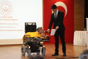 Yozgat Belediyesi Bilal Şahin Kültür Merkezi’nde düzenlenen etkinlikte konuşan Vali Mehmet Ali Özkan, engellilerin 3 Aralık Dünya Engelliler Günü’nü kutladı. Özel insanlar konusunda ülkede son derece ciddi aşamalar yapıldığını anlatan Vali Özkan, “Aslında engelli yok, engel koyan bizler varız. Binasına, sokağına, aracına, yoluna, engeller oluşturan bizler varız. Binasına, sokağına, aracına, yoluna, engeller oluşturan bizler varız. Yeri geldiğinde kentlerimizde, sokaklarımızda, yeri geldiğinde, köylerimizde eksikliklerimizle her ne kadar iyi niyetimiz Salih de olsa eksikliklerimiz bu özel insanlarımızın, bu güzel insanlarımızın, bu özel çocuklarımızın önüne engeller koyan bizler varız. Tabii bu engelleri kaldırmak ve onların hayatlarını kolaylaştırmak üzere çalışma yapmakta hepimizin ödevi, hepimizin görevi. Onun için bu vesileyle 3 Aralık bu gününde ilk önce bir kez daha kendimize soralım. Kendimizi sorgulayalım. Eksiklerimizi yanlışlarımızı tespit edelim. Ve onların hayatını kolaylaştırmak için bizler üzerimize düşeni hep birlikte yapalım. Tabii engellilerimiz, özel insanlarımız konusunda ülkemiz son derece ciddi aşamalar kaydetti. Birçok alanda onların hayatını kolaylaştırmak üzere tedbir almaya devam ediyoruz. Ama bakın sosyal hizmetler, aile sosyal hizmetler konusunda emin olabilirsiniz ki Avrupa’sında, Orta Doğu’sunda, Sayın Cumhurbaşkanımızın himayelerinde en hızlı en çabuk ve de en dokunaklı yol kat eden ülkelerden birisi olmuştur. Evet eksiklerimiz var. Evet gidermemiz gereken yanlışlarımız var. Ama her şey önce yapmamız gereken bizim gönüllerimizi kalplerimizi düzeltmemiz gerekir.”diye konuştu.