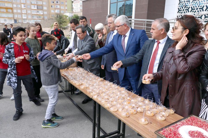 Merkez Ortaokulu Müdürü Fatih Bilir günün anlam ve önemine dair konuşma yaparak muharrem ayının Müslümanlar için çok önemli olduğunu söyledi. Konuşmanın ardından Yozgat Vali Yardımcısı Şükrü Çakır, Yozgat Belediye Başkanı Kazım Arslan ve İl Milli Eğitim Müdürü Yusuf Yazıcı aşure kazanlarının başına geçerek öğrencilere aşure dağıttı.