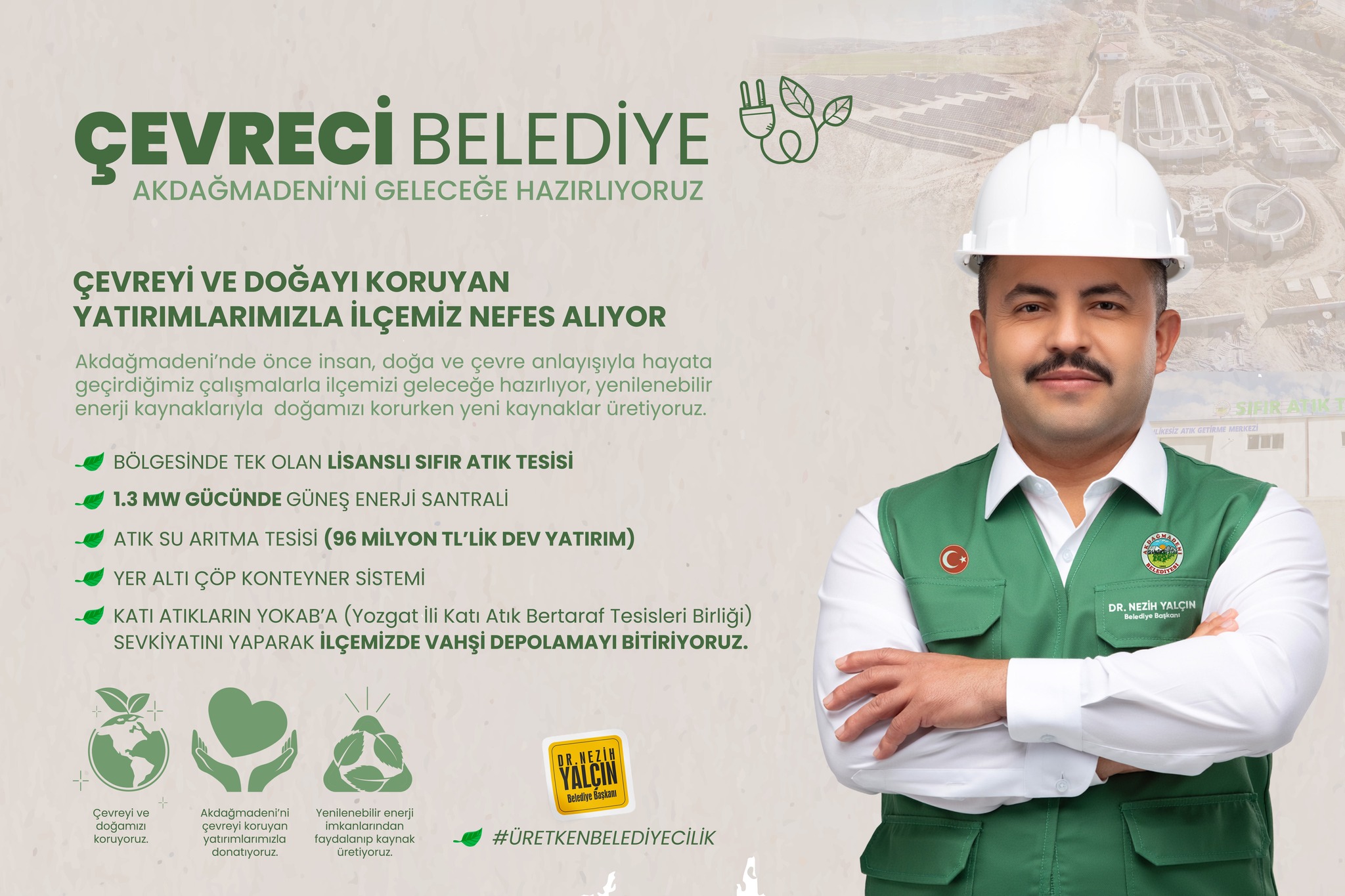 Belediye Başkanı Nezih Yalçın, Akdağmadeni’nde çevreci yatırımların artarak devam edeceğini belirterek, “Sürdürülebilir bir yaşam için doğaya duyarlı projeleri kararlılıkla hayata geçirmeye devam edeceğiz” dedi./Haber Merkezi