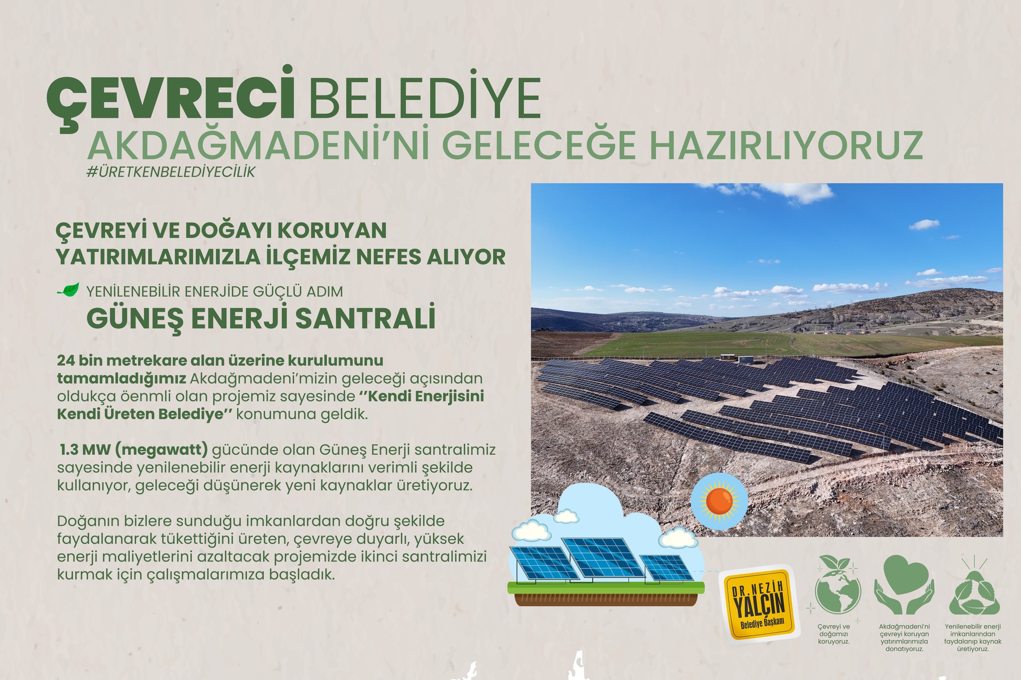 Belediye tarafından hayata geçirilen projeler kapsamında, yenilenebilir enerji kaynaklarından faydalanılarak kurulan Güneş Enerji Santrali ile temiz enerji üretimi sağlanıyor. Bu yatırımla hem çevre korunuyor hem de belediye bütçesine katkı sunuluyor.