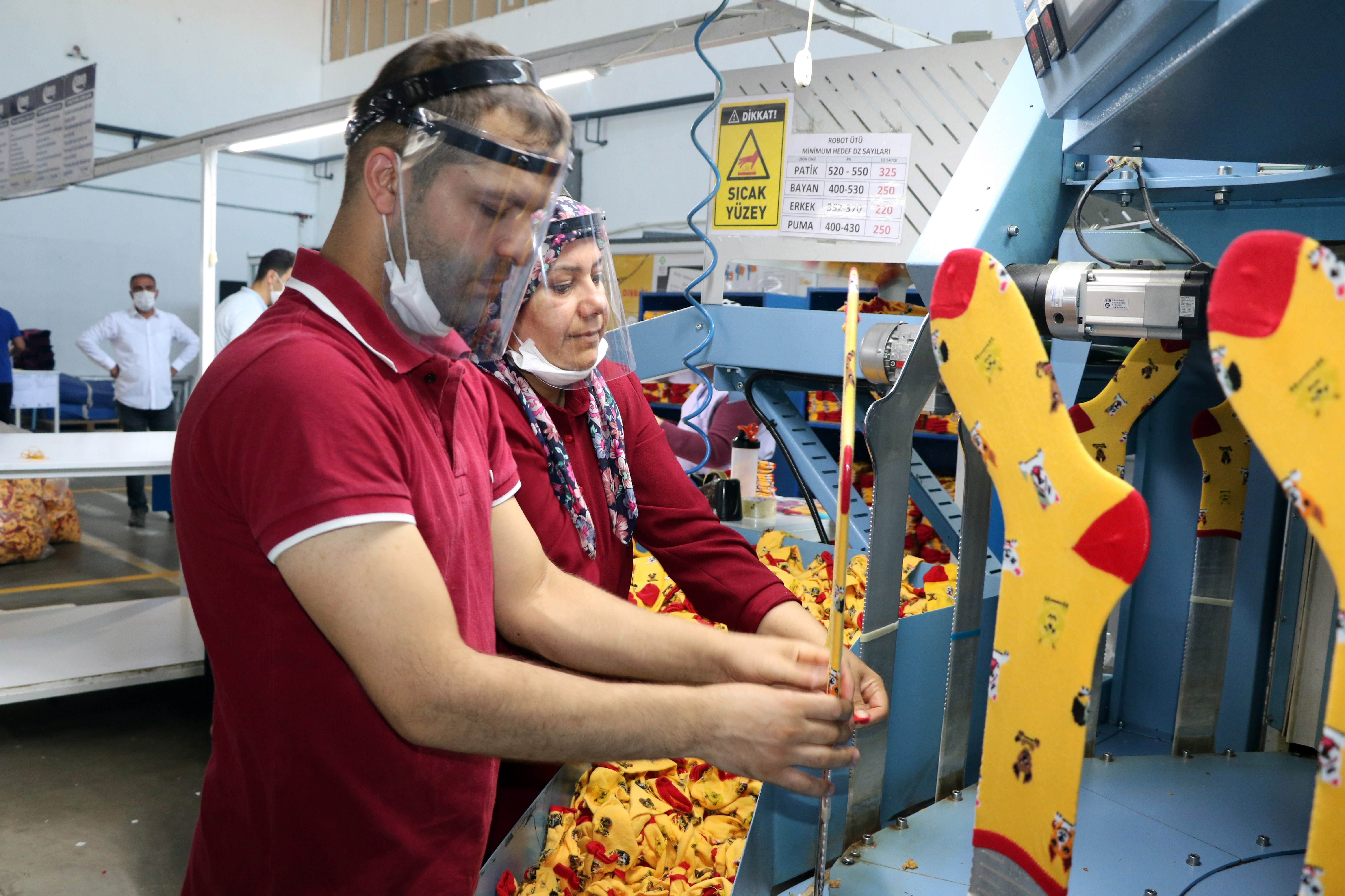 Ülke ekonomisine yıllık 30 milyon TL’lik katkı yaptıklarını söyleyen Firma Genel Müdürü Eyüp Çam, “İşletmemiz uluslararası firmaların gösterdiği sertifikalara sahip kurumsal bir firma. Yaklaşık 250 çalışanımız var, 250 çalışanımız ile yıllık yaklaşık 36 milyon çift çorap yapıyoruz ve bunu dünya markalarına veriyoruz. Avrupa Birliği’ne üye ülkelere gönderiyoruz. Almanya, İngiltere, Fransa ve dünya markalarına üretim yapıyoruz. Günlük 100 bin, aylık 3 milyon yıllık 36 milyon çift çorap üretiyoruz. Yıllık 30 milyon TL’lik bir ihracat geliri elde ediyoruz. Ülke ekonomisine bu şekilde katkıda bulunuyoruz” dedi.