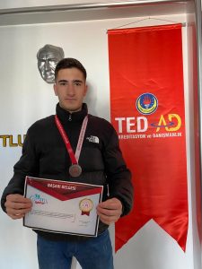 AYÇ TED/AD Koleji Müdürü Ahmet Fahri Yaşar, Okul Sporları Güreş Grekoromen Genç B Erkek Grup Müsabakasında Türkiye 3.sü olarak büyük bir başarı elde eden öğrencileri Yusuf Ziya Bolat’ı tebrik etti.