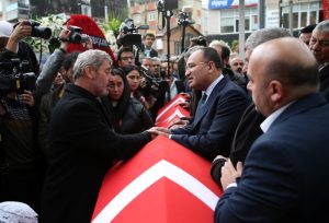 Adalet Bakanı Bekir Bozdağ, İstanbul’un Beyoğlu ilçesi İstiklal Caddesi’ndeki bombalı terör saldırısında hayatını kaybeden Adem Topkara ile eşi Mukaddes Elif Topkara’nın, Ayazağa Merkez Camisindeki cenaze törenine katıldı.