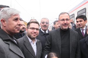 Gençlik ve Spor Bakanımız M. Muharrem Kasapoğlu, 6-8 Ocak 2023 tarihleri arasında gerçekleştirilecek olan Sarıkamış Şehitlerini Anma Programı için Sarıkamış Ekspres ile bugün Ankara garından yola çıktı. Trende Bakan M. Muharrem Kasapoğlu’na 50 genç, Milli Sporcular ve çeşitli sanatçılarda eşlik etti. Ankara garından hareket eden Sarıkamış Ekspres treni öğle saatlerinde Yozgat’ınYerköy tren garına geldi. Bakan Kasapoğlu’nu burada Yerköy Kaymakamı Muharrem Coşgun, Yerköy Belediye Başkanı Ferhat Yılmaz, Yozgat Gençlik ve Spor İl Müdürü Rasim Parlak, Ak Parti İl Başkanı Yusuf Başer, Ak Parti Gençlik Kolları Başkanı Yaşar Taşdemir, Ak Parti Yerköy İlçe Başkanı Hacı Dereli, Gençlik Merkezi Üyeleri, Yerköy Molla Hüsrev Yurdu Öğrencileri ve vatandaşlar karşıladı. Gençlerle bir süre sohbet eden Kasapoğlu, gençlerle öz çekim yaptı. Kaymakam Muharrem Coşkun ve Belediye Başkanı Ferhat Yılmaz’dan çalışmalar hakkında bilgi alan Kasapoğlu, daja sonra Kars’ın Sarıkamış ilçesine gitmek üzere trenle hareket etti. Haber Merkezi