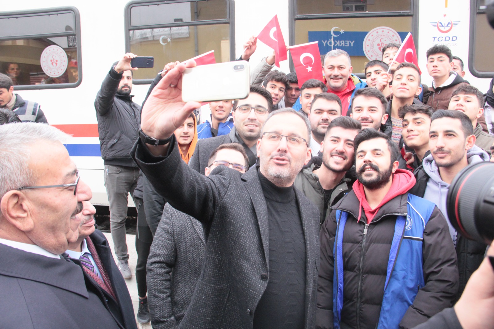Gençlik ve Spor Bakanımız M. Muharrem Kasapoğlu, 6-8 Ocak 2023 tarihleri arasında gerçekleştirilecek olan Sarıkamış Şehitlerini Anma Programı için Sarıkamış Ekspres ile bugün Ankara garından yola çıktı. Trende Bakan M. Muharrem Kasapoğlu’na 50 genç, Milli Sporcular ve çeşitli sanatçılarda eşlik etti. Ankara garından hareket eden Sarıkamış Ekspres treni öğle saatlerinde Yozgat’ınYerköy tren garına geldi. Bakan Kasapoğlu’nu burada Yerköy Kaymakamı Muharrem Coşgun, Yerköy Belediye Başkanı Ferhat Yılmaz, Yozgat Gençlik ve Spor İl Müdürü Rasim Parlak, Ak Parti İl Başkanı Yusuf Başer, Ak Parti Gençlik Kolları Başkanı Yaşar Taşdemir, Ak Parti Yerköy İlçe Başkanı Hacı Dereli, Gençlik Merkezi Üyeleri, Yerköy Molla Hüsrev Yurdu Öğrencileri ve vatandaşlar karşıladı. Gençlerle bir süre sohbet eden Kasapoğlu, gençlerle öz çekim yaptı. Kaymakam Muharrem Coşkun ve Belediye Başkanı Ferhat Yılmaz’dan çalışmalar hakkında bilgi alan Kasapoğlu, daja sonra Kars’ın Sarıkamış ilçesine gitmek üzere trenle hareket etti. Haber Merkezi