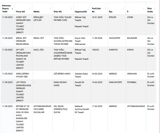 Son yayımlanan liste ile birlikte, uygunsuz üretim yaptığı tespit edilen firmaların ürünleri kamuoyuyla paylaşılırken, tüketicilerin bilinçli tercihler yapmasının önemi bir kez daha ortaya çıktı.