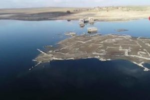 Barajda balıkçılık yaptıklarını da dile getiren Özanç, “Daha önce şuan ortaya çıkan belediye binasının üzerine kayıkla gelip ağ gererdik, şimdi sular binanın altında kaldı. Fazla balık da çıkmıyor, 600 metre ağ çektim 2 balık çıktı” dedi.