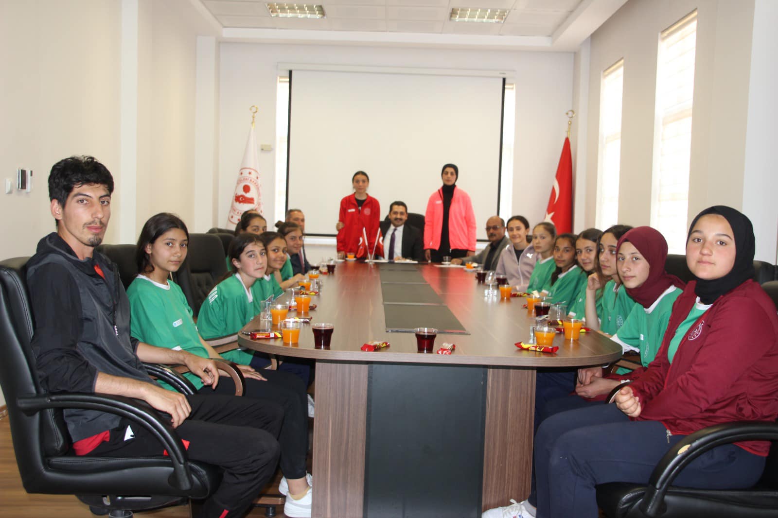 Gençlik ve Spor Bakanlığı tarafından okul sporları kapsamında gerçekleştirilen turnuvalarda Türkiye derecesi elde eden Kadışehrili sporcular ile ilçede düzenlenen Voleybol Turnuvasında birinci olan takım Kaymakam Yunus Polat’ı makamında ziyaret etti.