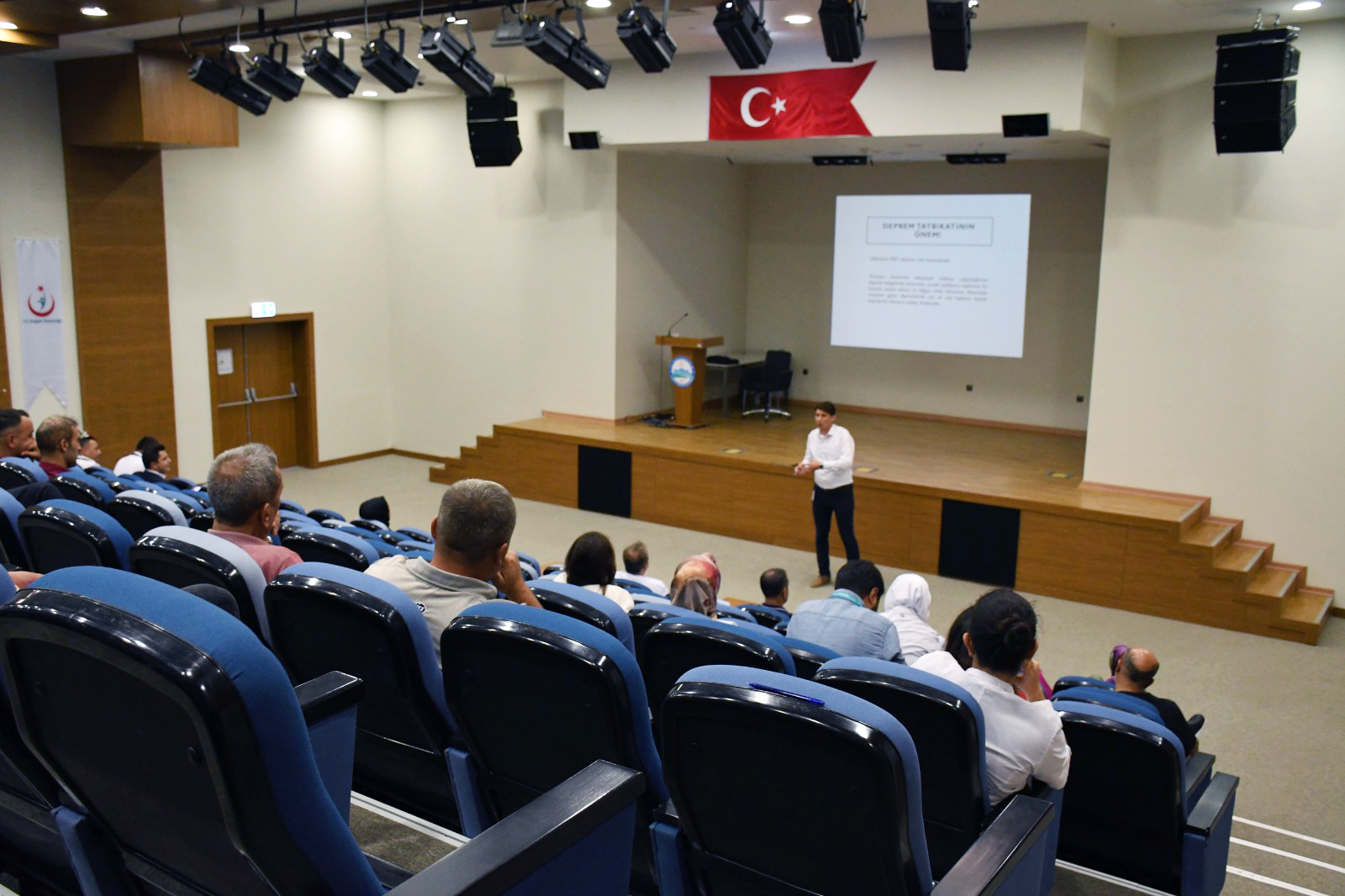 Şehir Hastanesi Konferans salonunda hastane çalışanlarına yönelik düzenlenen konferansta “Deprem tatbikatı ve Afet Bilinci” konulu brifing verildi.