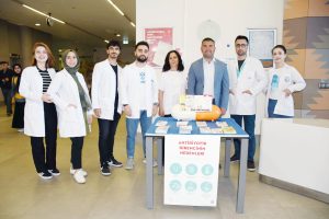 Yozgat Şehir Hastanesi poliklinik girişlerinde açılan standı ziyaret eden Başhekim Uz. Dr. Mustafa Kozan “Hekimler reçete yazmadıkça kendi kendine, ya da başkalarının önerisiyle ilaç kullanılmamalıdır. Antibiyotikler, Antiviraller, Antifungaller, Antiparaziterler siz uygunsuz ve gereksiz kullandıkça etkisini kaybeden ilaçlardır. Gelecek nesiller için toplumumuzda bu bilinci oluşturmak hepimizin görevidir. İlaçlar sadece hekimin reçete ettiği durumlarda, eczacının danışmanlığında uygun miktar ve sürede kullanılmalıdır. Hekim reçete etmedikçe kendi kendine ya da yakınlarımızın önerisiyle kullanılmamalıdır. Antibiyotikler ağrı kesici, ateş düşürücü değildir ve her hastalığı tedavi edemez. Nezle ya da grip gibi virüslerle oluşan infeksiyonlarda antibiyotiklerin tedavide yerinin olmadığı ve gereksiz antibiyotik kullanımıyla istenmeyen yan etkilerin görülebileceği unutulmamalıdır. Enfeksiyonlara karşı mücadelede, hijyen, sanitasyon, sağlık bakımı, el hijyeni gibi standart önlemleri içeren gerekli bütün enfeksiyon kontrol önlemlerinin uygulanmasının sağlanması, aşı ile önlenebilen hastalıklarda etkili bağışıklama programlarının yürütülmesi de önem arz etmektedir” dedi.