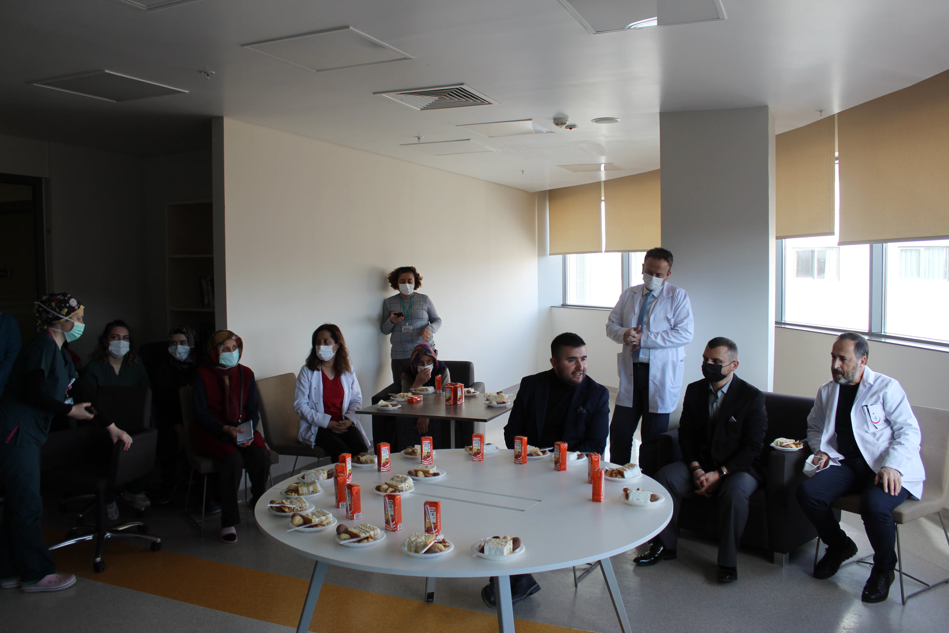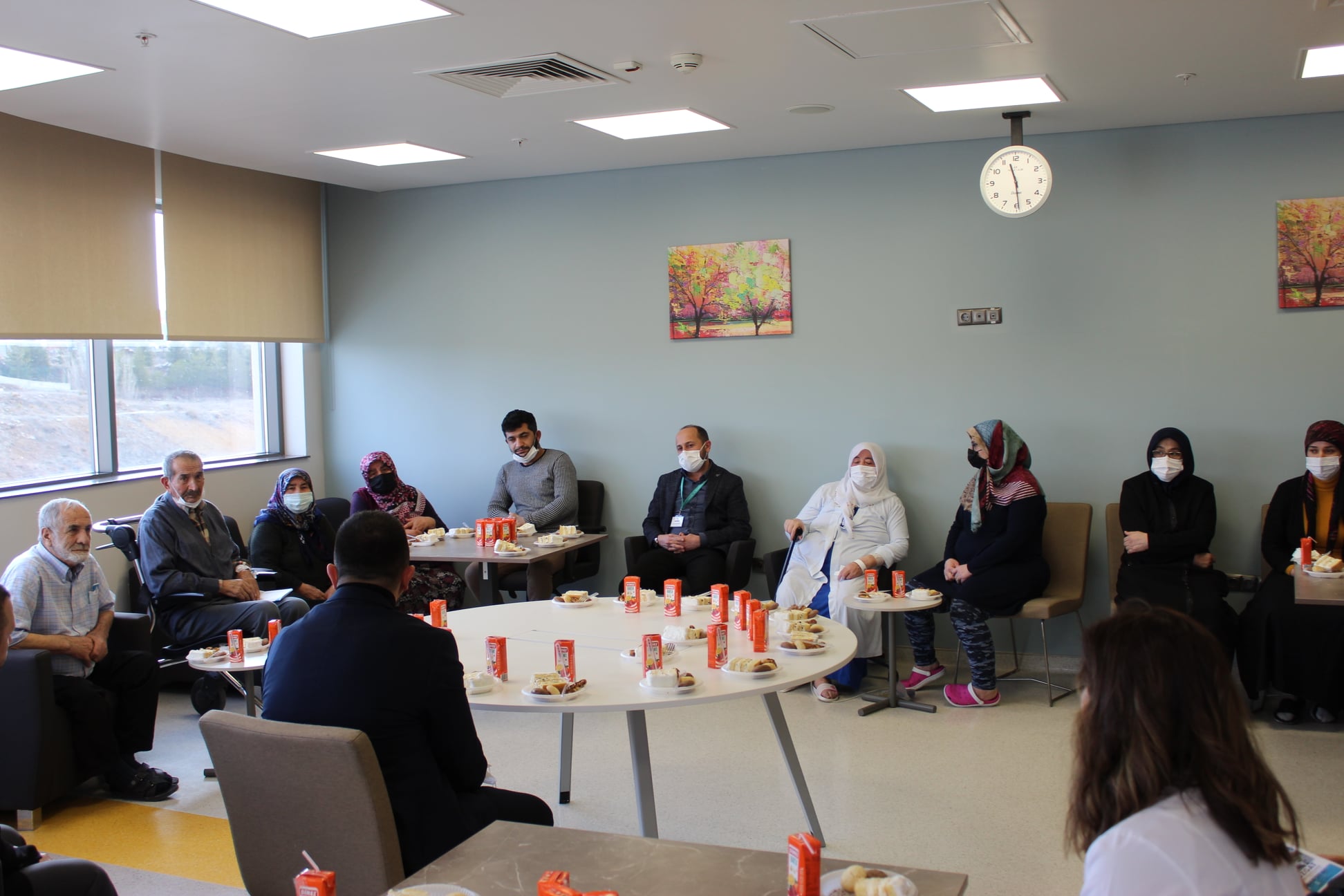 Hastanenin Palyatif Servisinde başlanılan Hasta ve hasta yakınları buluşma etkinliğine Başhekim Uzm.Dr. Mustafa Kozan, Başhekim Yardımcısı Dr. Mete Selvi ve Sağlık Bakım Hizmetleri Müdürü Elif Tinel ve diğer birim çalışanları katıldı. Etkinlikte yatarak tedavi gören hastalar ziyaret edilerek, hasta ve yakınları ile sohbet edildi.Buluşmada hasta ve hasta yakınlarının memnuniyet ve şikâyetleri ikramlar esliğinde dinlendi.