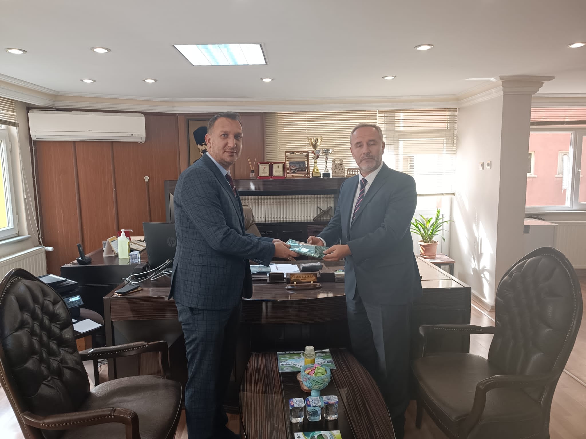 Başkan Açıkel, ziyarette ilçe müftüsü ve personeline çeşitli hediyeler takdim etti. Alpaslan DEMİR