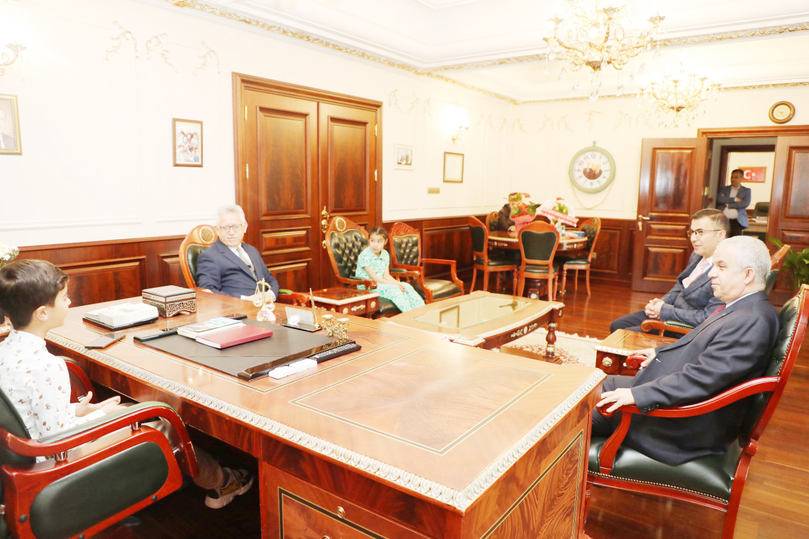 Minik başkanlar, bir günlük süreyle “küçük başkanlar” olarak belediye başkanının makamında görev yapmanın gururunu yaşadılar./Mehmet EROL