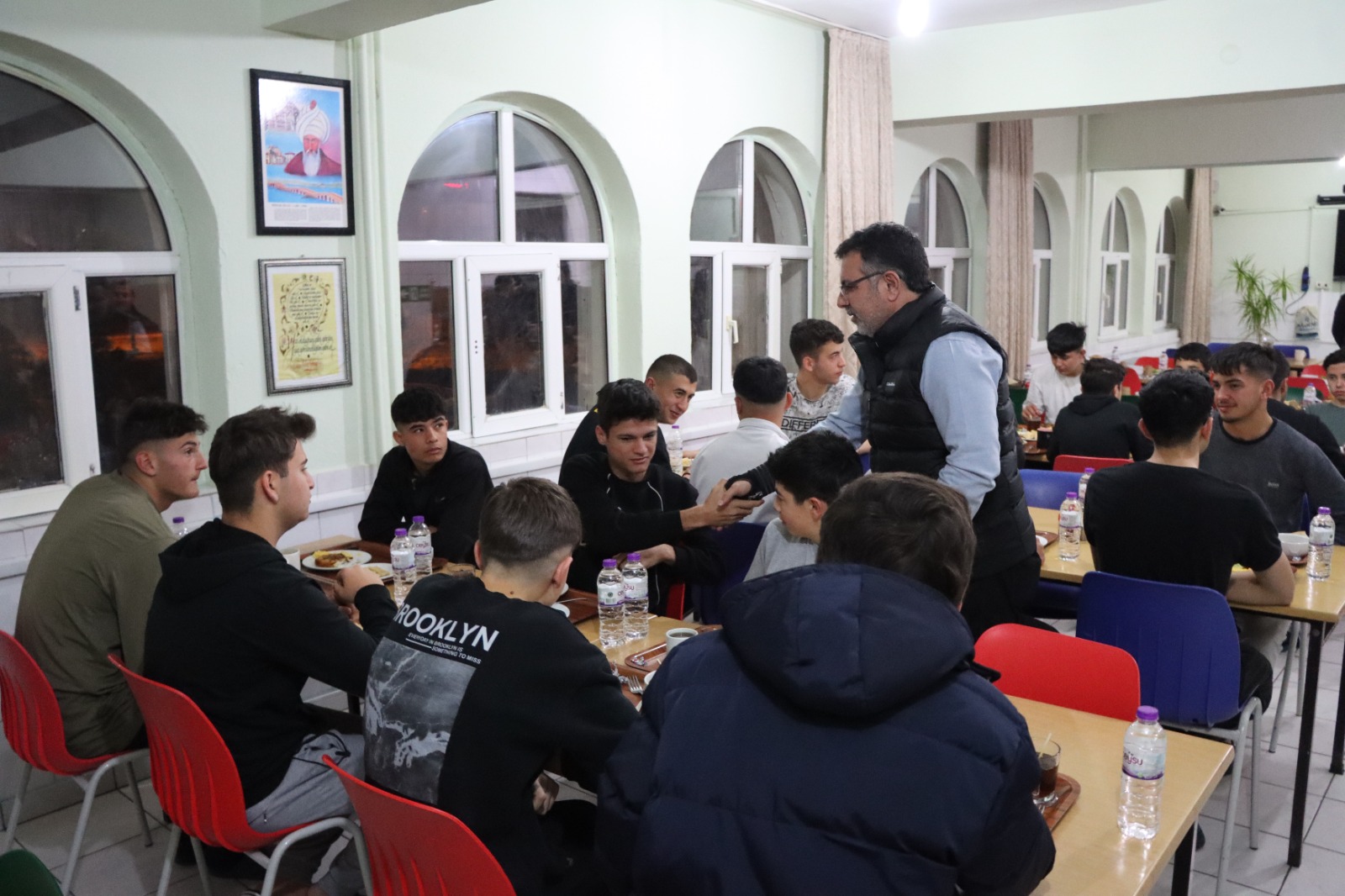 100. Yıl Mahallesi’nde bulunan Yerköy Hüseyin Erbaş İmam Hatip Lisesi pansiyonunda öğretmen ve öğrencilerle sahur yapan Başkan Arslan, gençlerle yakından ilgilendi.